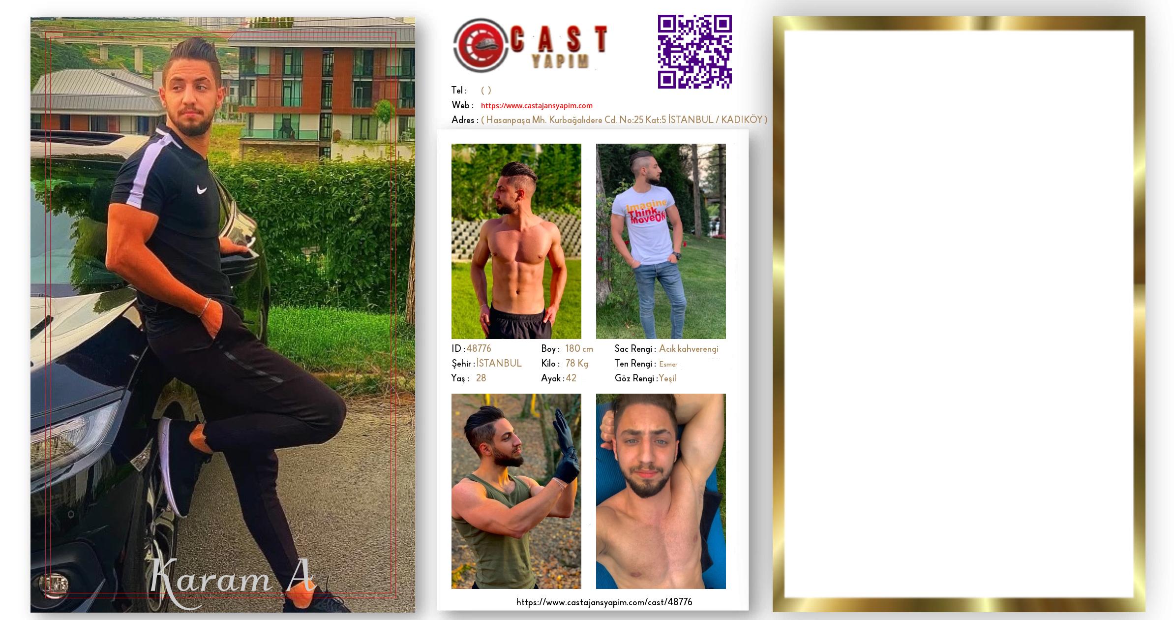 Merhaba, ben Karam. İSTANBUL şehrinde yaşıyorum ve 28 yaşındayım. Genel özelliklerim arasında boyum 180 cm, kilom 78 kg, saç rengim Açık kahverengi, göz rengim Yeşil, ten rengim Esmer.