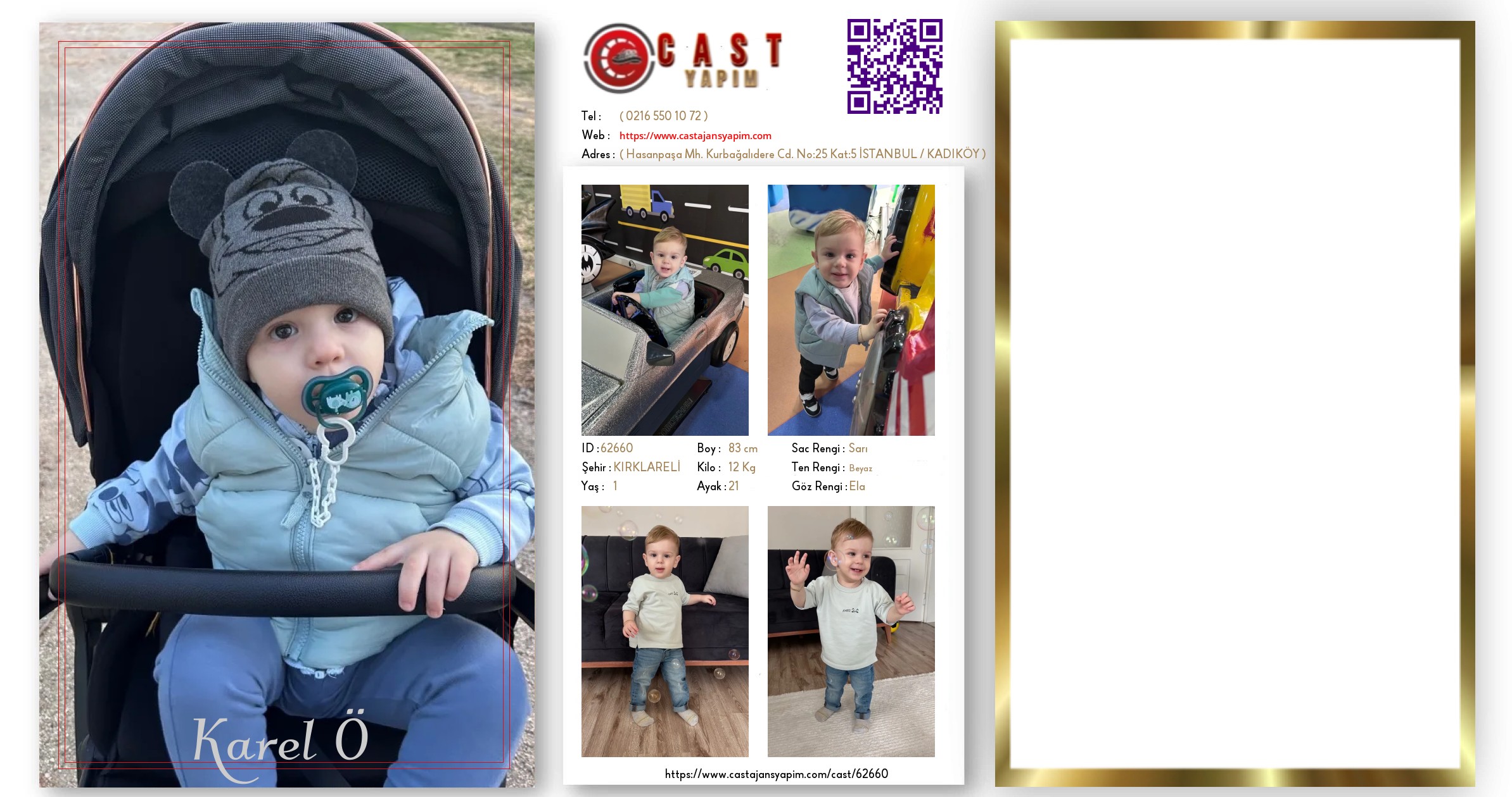 Merhaba, ben Karel. KIRKLARELİ şehrinde yaşıyorum ve 2 yaşındayım. Genel özelliklerim arasında boyum 83 cm, kilom 12 kg, saç rengim Sarı, göz rengim Ela, ten rengim Beyaz.