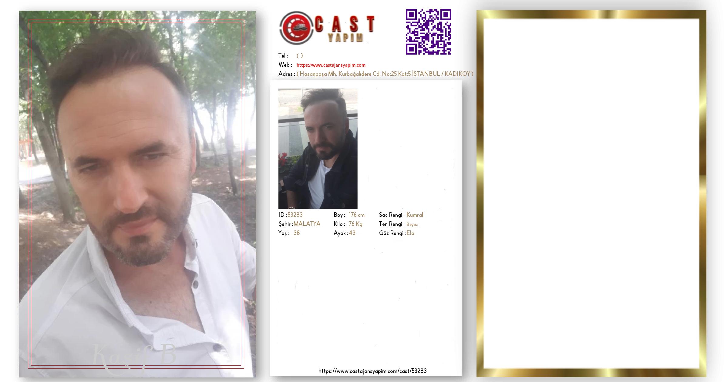 Merhaba, ben Kaşif B. MALATYA şehrinde yaşıyorum ve 38 yaşındayım. Genel özelliklerim arasında boyum 176 cm, kilom 76 kg, saç rengim Kumral, göz rengim Ela, ten rengim Beyaz.
