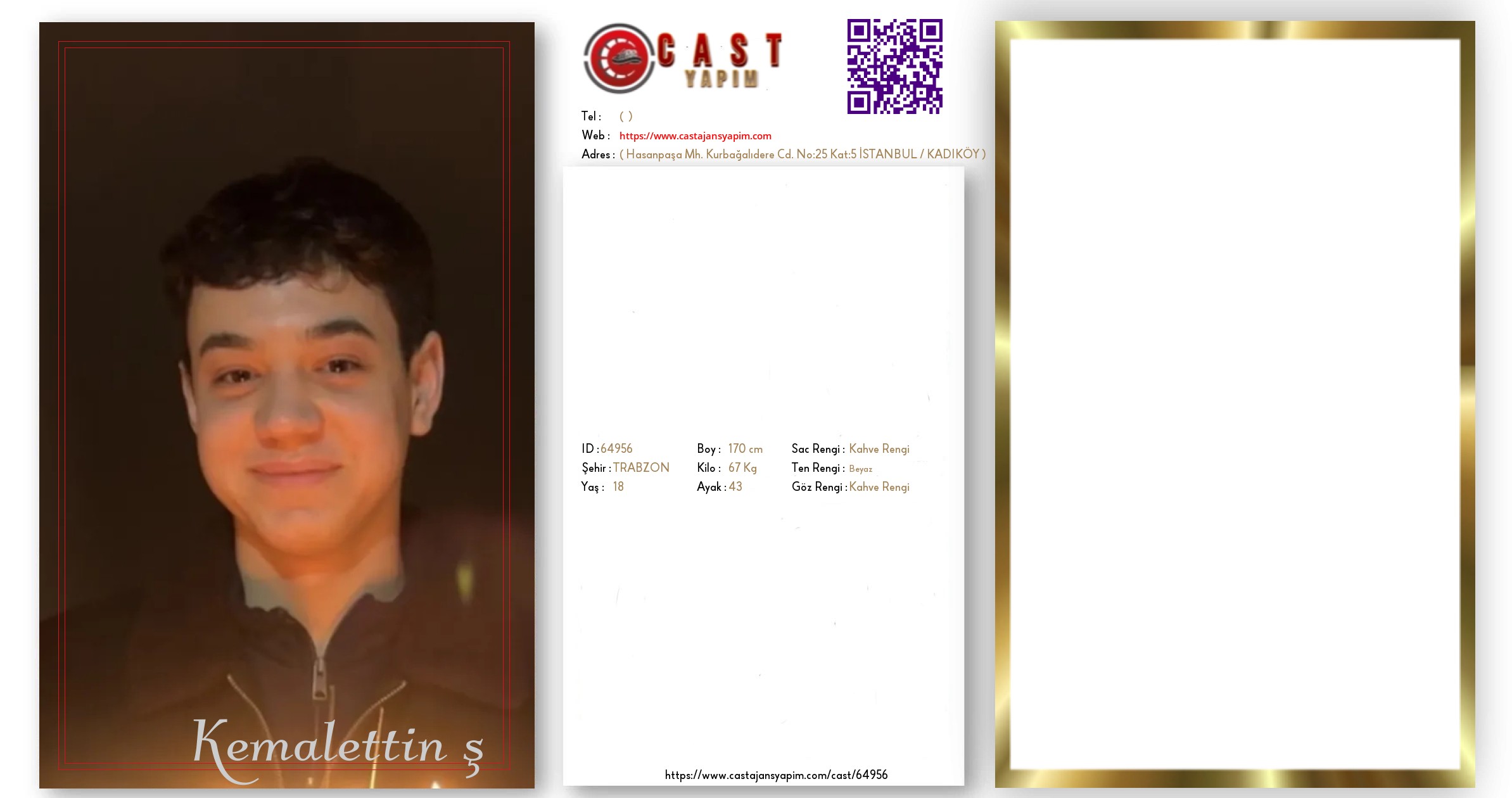 Merhaba, ben Kemalettin. TRABZON şehrinde yaşıyorum ve 18 yaşındayım. Genel özelliklerim arasında boyum 170 cm, kilom 67 kg, saç rengim Kahve Rengi, göz rengim Kahve Rengi, ten rengim Beyaz.