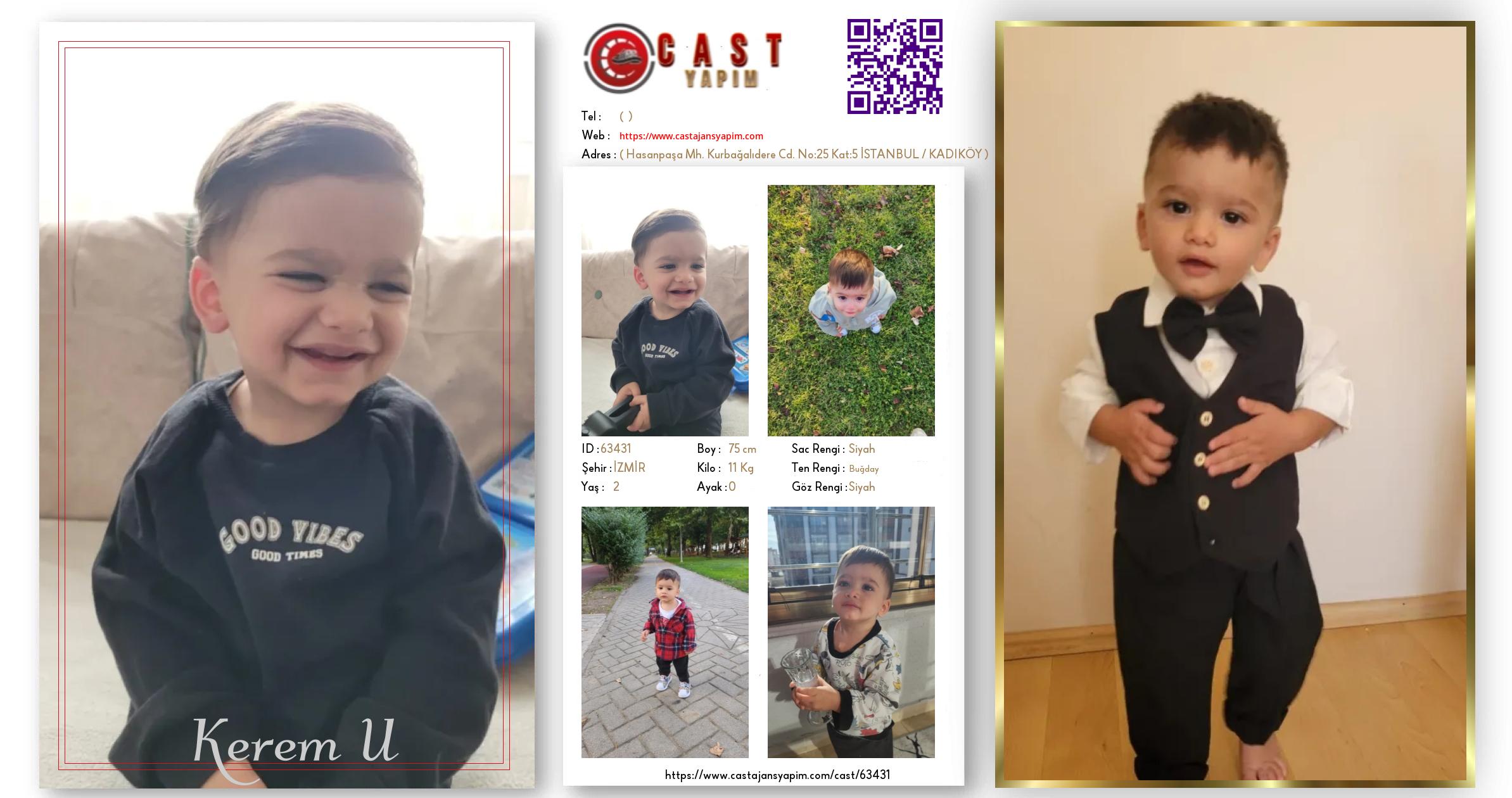 Merhaba, ben Kerem U. İZMİR şehrinde yaşıyorum ve 2 yaşındayım. Genel özelliklerim arasında boyum 75 cm, kilom 11 kg, saç rengim Siyah, göz rengim Siyah, ten rengim Buğday.