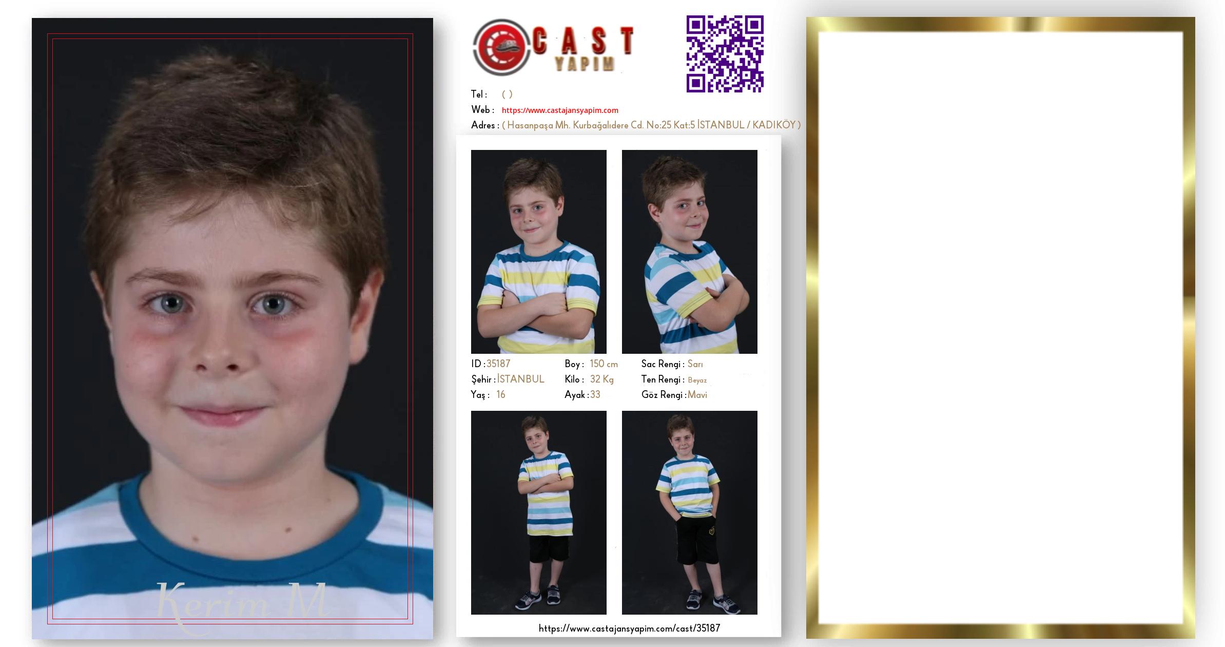 Merhaba, ben Kerim. İSTANBUL şehrinde yaşıyorum ve 16 yaşındayım. Genel özelliklerim arasında boyum 150 cm, kilom 32 kg, saç rengim Sarı, göz rengim Mavi, ten rengim Beyaz.