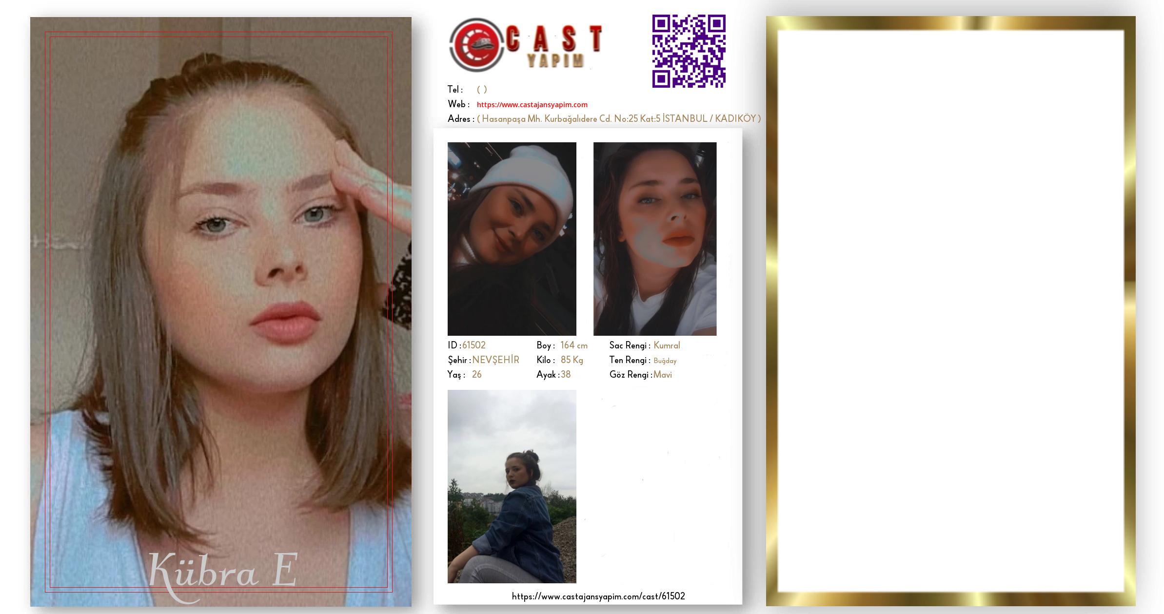 Merhaba, ben Kübra E. NEVŞEHİR şehrinde yaşıyorum ve 26 yaşındayım. Genel özelliklerim arasında boyum 164 cm, kilom 85 kg, saç rengim Kumral, göz rengim Mavi, ten rengim Buğday.