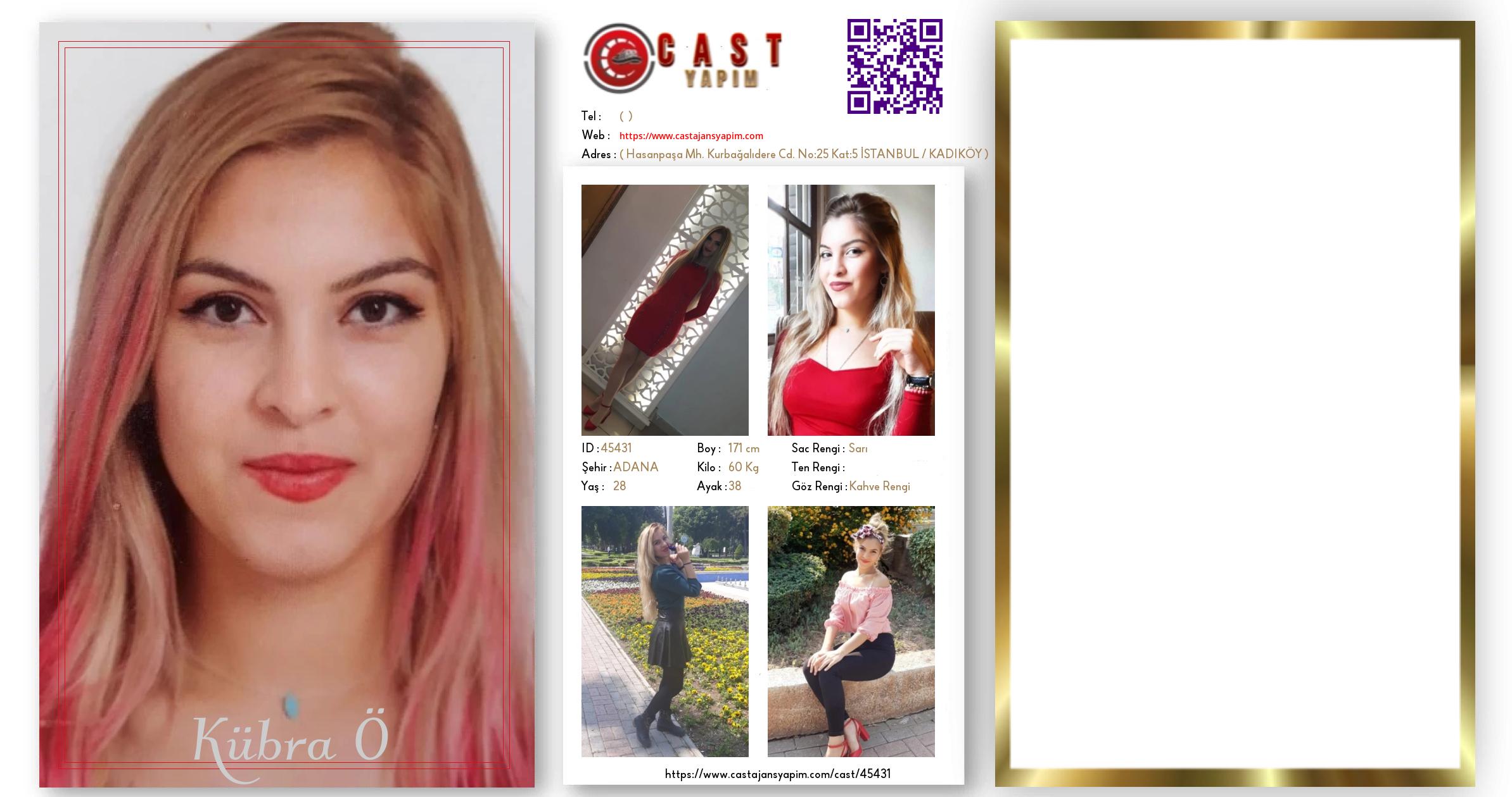 Merhaba, ben Kübra. ADANA şehrinde yaşıyorum ve 28 yaşındayım. Genel özelliklerim arasında boyum 171 cm, kilom 60 kg, saç rengim Sarı, göz rengim Kahve Rengi.