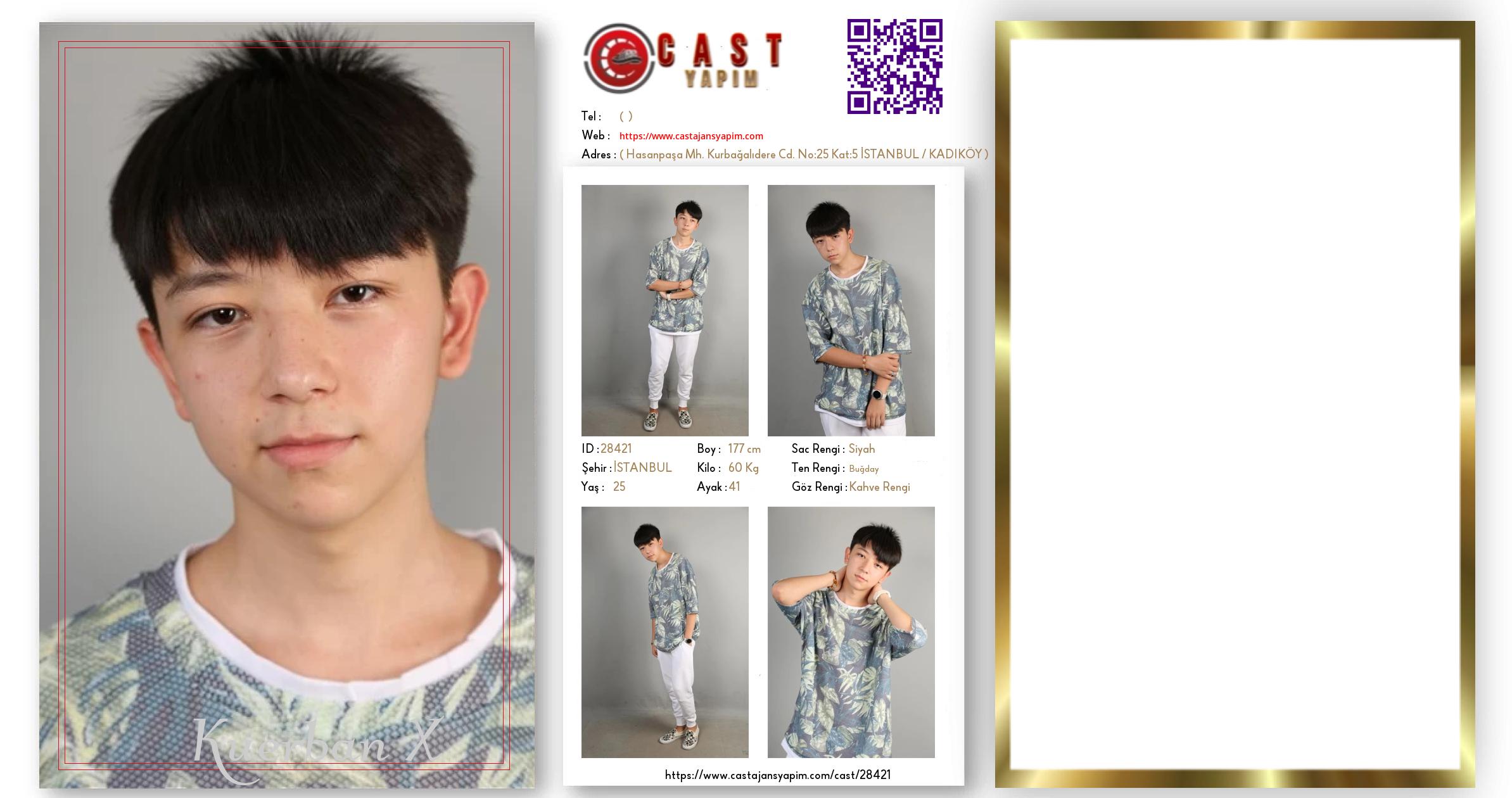 Merhaba, ben Kuerban Jiang. İSTANBUL şehrinde yaşıyorum ve 25 yaşındayım. Genel özelliklerim arasında boyum 177 cm, kilom 60 kg, saç rengim Siyah, göz rengim Kahve Rengi, ten rengim Buğday.