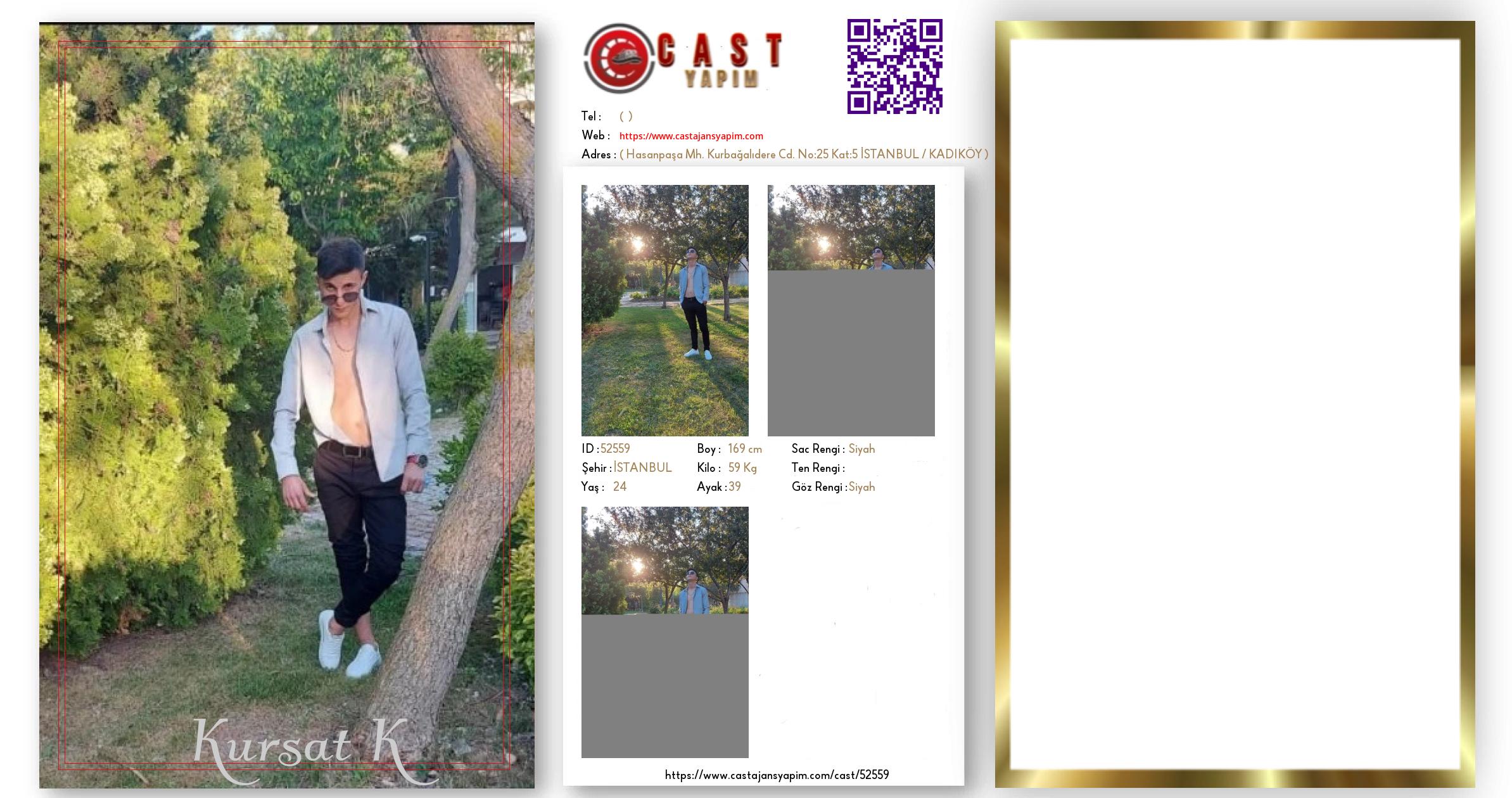 Merhaba, ben Kursat. İSTANBUL şehrinde yaşıyorum ve 24 yaşındayım. Genel özelliklerim arasında boyum 169 cm, kilom 59 kg, saç rengim Siyah, göz rengim Siyah.
