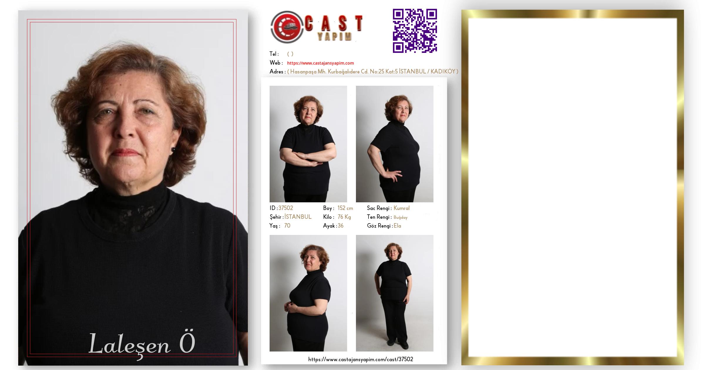 Merhaba, ben Laleşen. İSTANBUL şehrinde yaşıyorum ve 70 yaşındayım. Genel özelliklerim arasında boyum 152 cm, kilom 76 kg, saç rengim Kumral, göz rengim Ela, ten rengim Buğday.