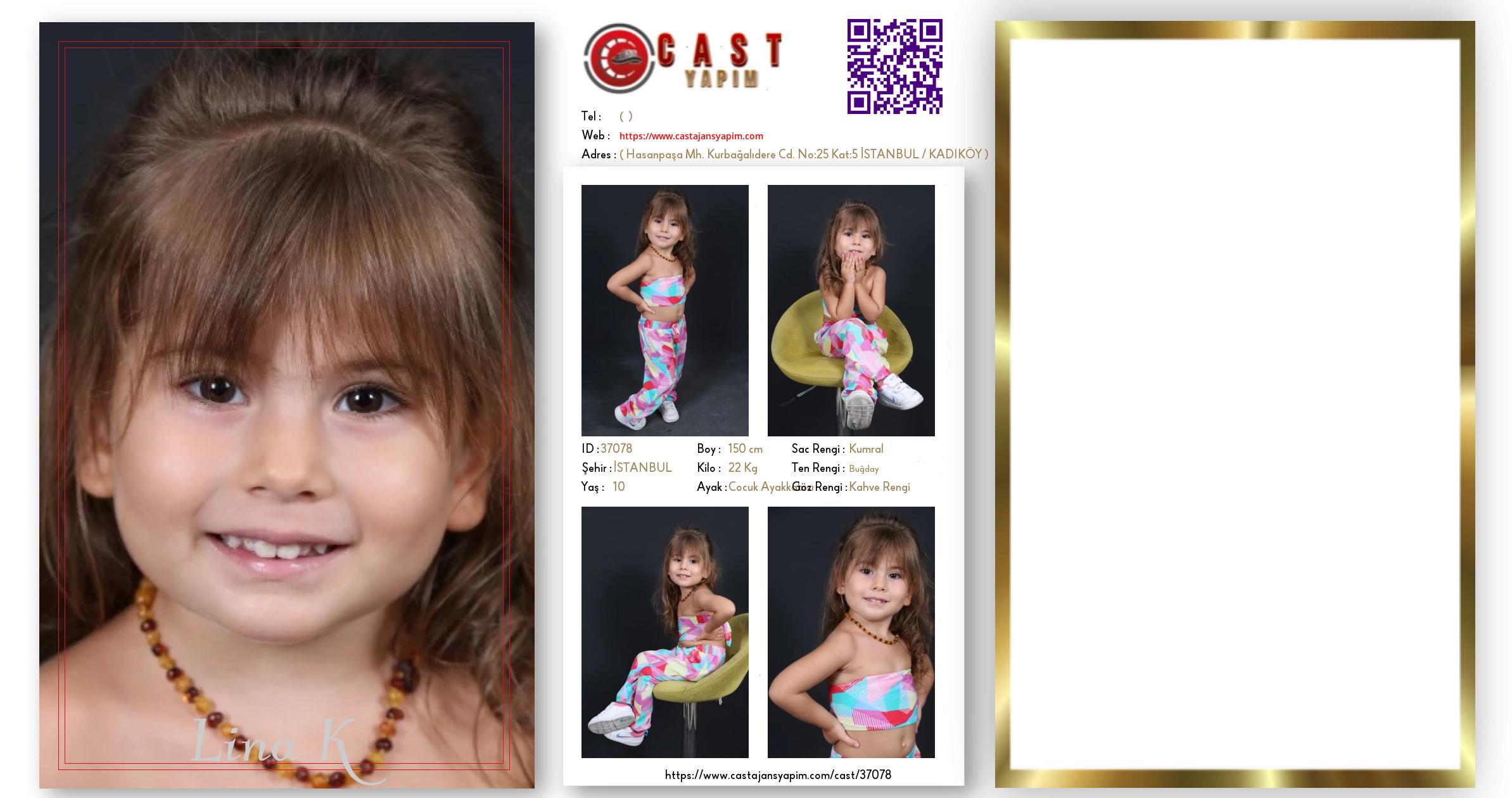 Merhaba, ben Lina Almina. İSTANBUL şehrinde yaşıyorum ve 10 yaşındayım. Genel özelliklerim arasında boyum 150 cm, kilom 22 kg, saç rengim Kumral, göz rengim Kahve Rengi, ten rengim Buğday.
