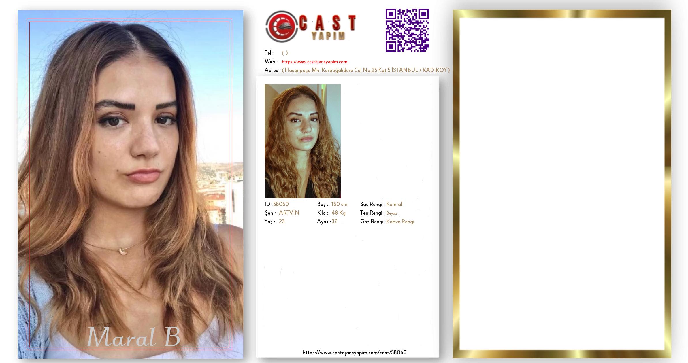 Merhaba, ben Maral B. ARTVİN şehrinde yaşıyorum ve 23 yaşındayım. Genel özelliklerim arasında boyum 160 cm, kilom 48 kg, saç rengim Kumral, göz rengim Kahve Rengi, ten rengim Beyaz.