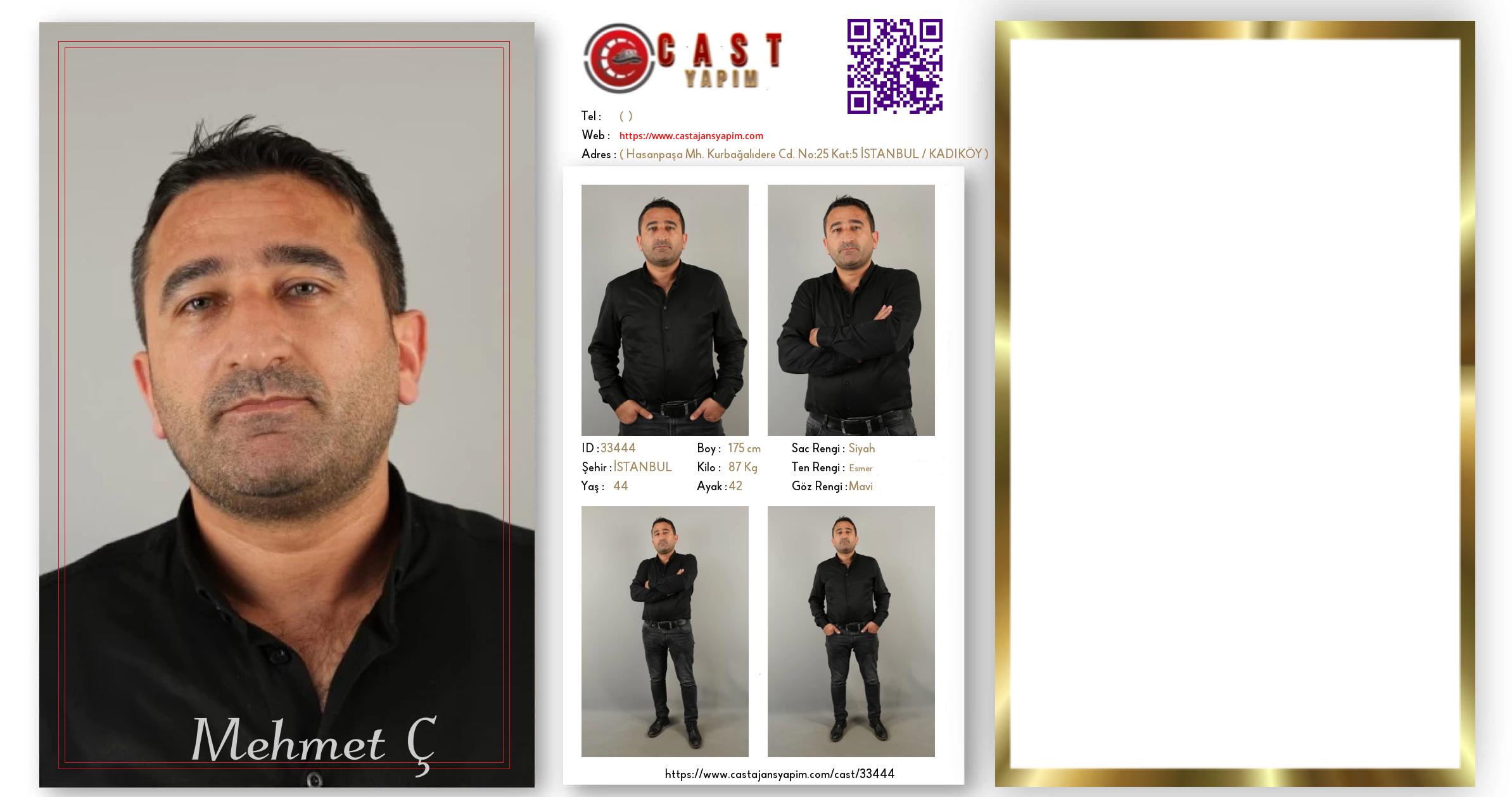 Merhaba, ben Mehmet. İSTANBUL şehrinde yaşıyorum ve 44 yaşındayım. Genel özelliklerim arasında boyum 175 cm, kilom 87 kg, saç rengim Siyah, göz rengim Mavi, ten rengim Esmer.