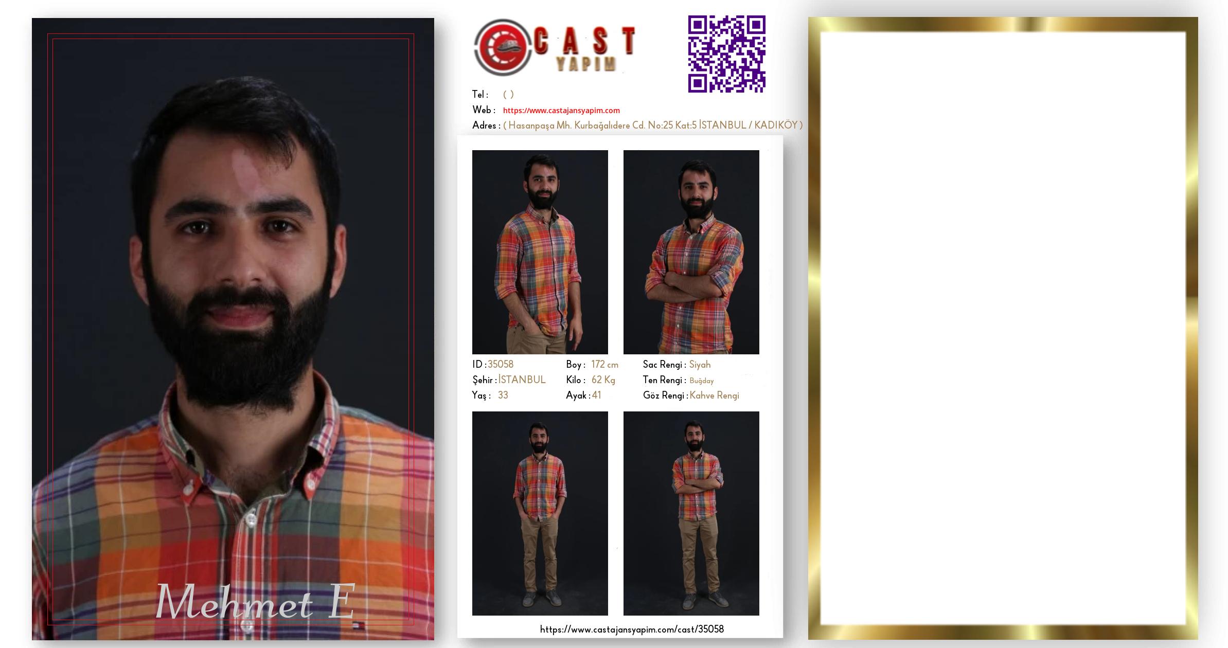 Merhaba, ben Mehmet E. İSTANBUL şehrinde yaşıyorum ve 33 yaşındayım. Genel özelliklerim arasında boyum 172 cm, kilom 62 kg, saç rengim Siyah, göz rengim Kahve Rengi, ten rengim Buğday.