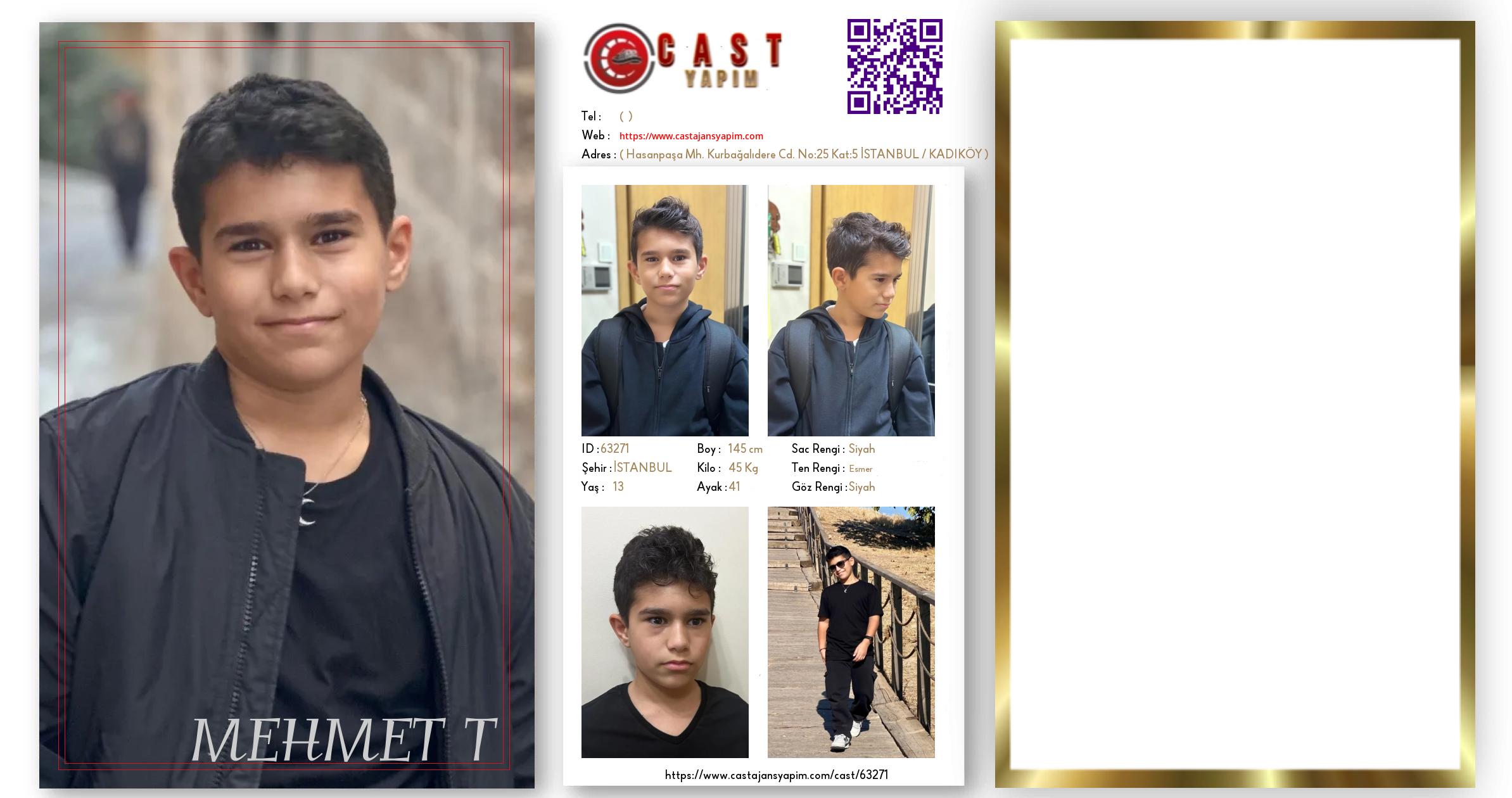 Merhaba, ben MEHMET POYRAZ. İSTANBUL şehrinde yaşıyorum ve 13 yaşındayım. Genel özelliklerim arasında boyum 145 cm, kilom 45 kg, saç rengim Siyah, göz rengim Siyah, ten rengim Esmer.