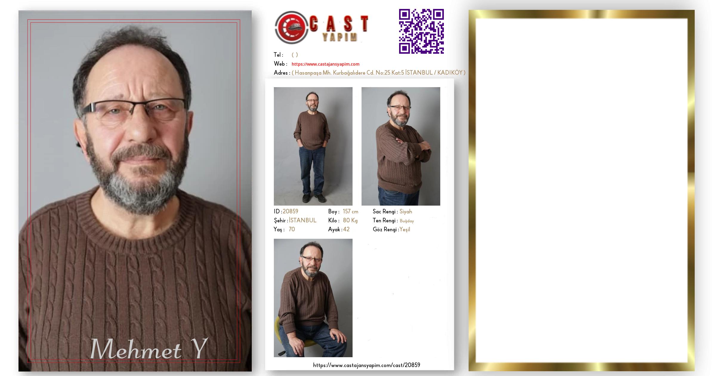 Merhaba, ben Mehmet Ali. İSTANBUL şehrinde yaşıyorum ve 70 yaşındayım. Genel özelliklerim arasında boyum 157 cm, kilom 80 kg, saç rengim Siyah, göz rengim Yeşil, ten rengim Buğday.
