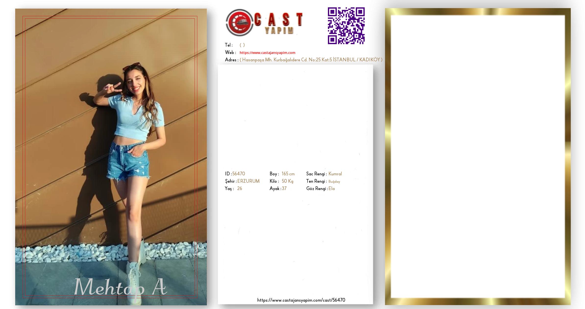 Merhaba, ben Mehtap A. ERZURUM şehrinde yaşıyorum ve 26 yaşındayım. Genel özelliklerim arasında boyum 165 cm, kilom 50 kg, saç rengim Kumral, göz rengim Ela, ten rengim Buğday.