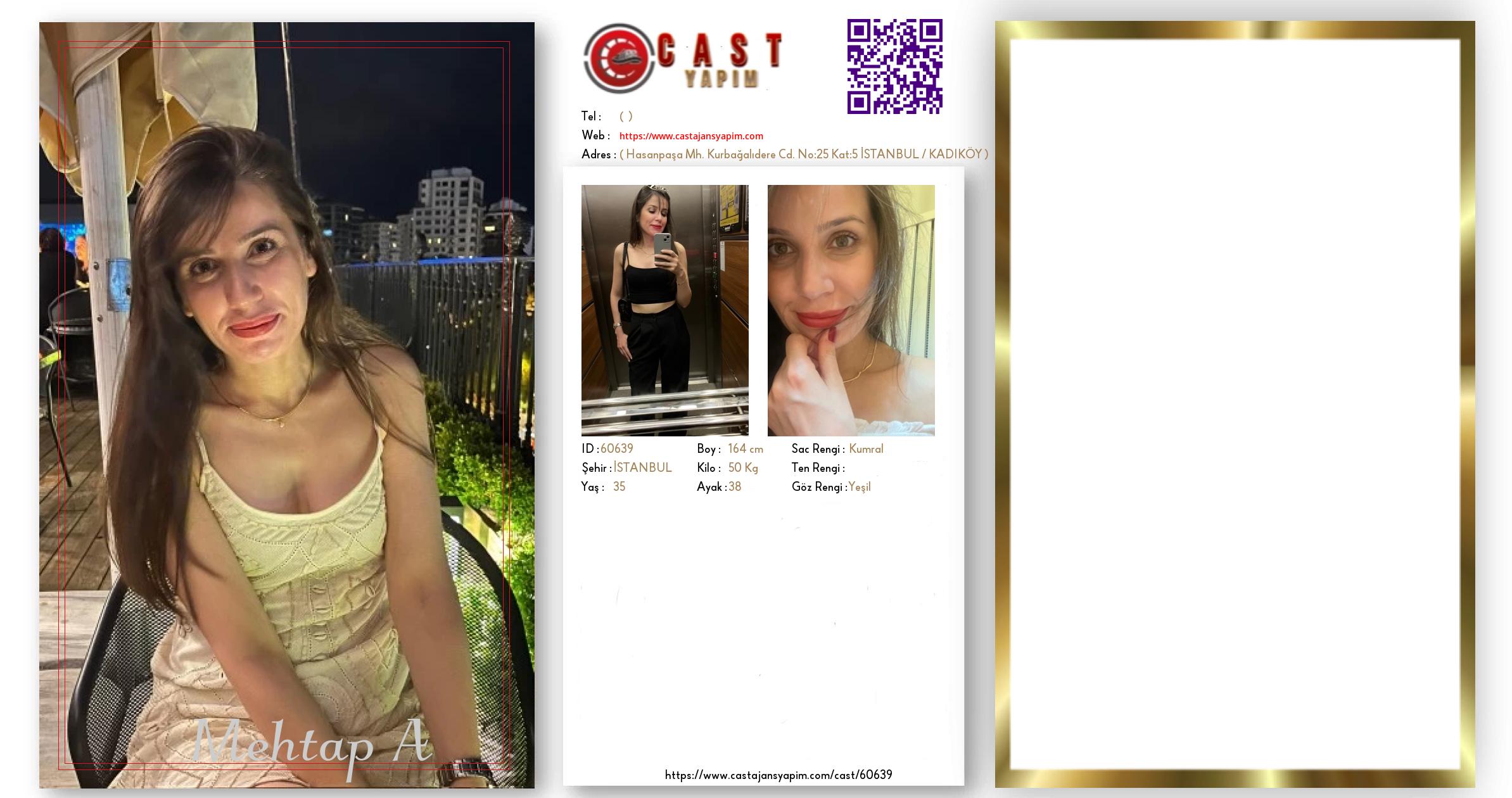 Merhaba, ben Mehtap A. İSTANBUL şehrinde yaşıyorum ve 35 yaşındayım. Genel özelliklerim arasında boyum 164 cm, kilom 50 kg, saç rengim Kumral, göz rengim Yeşil.