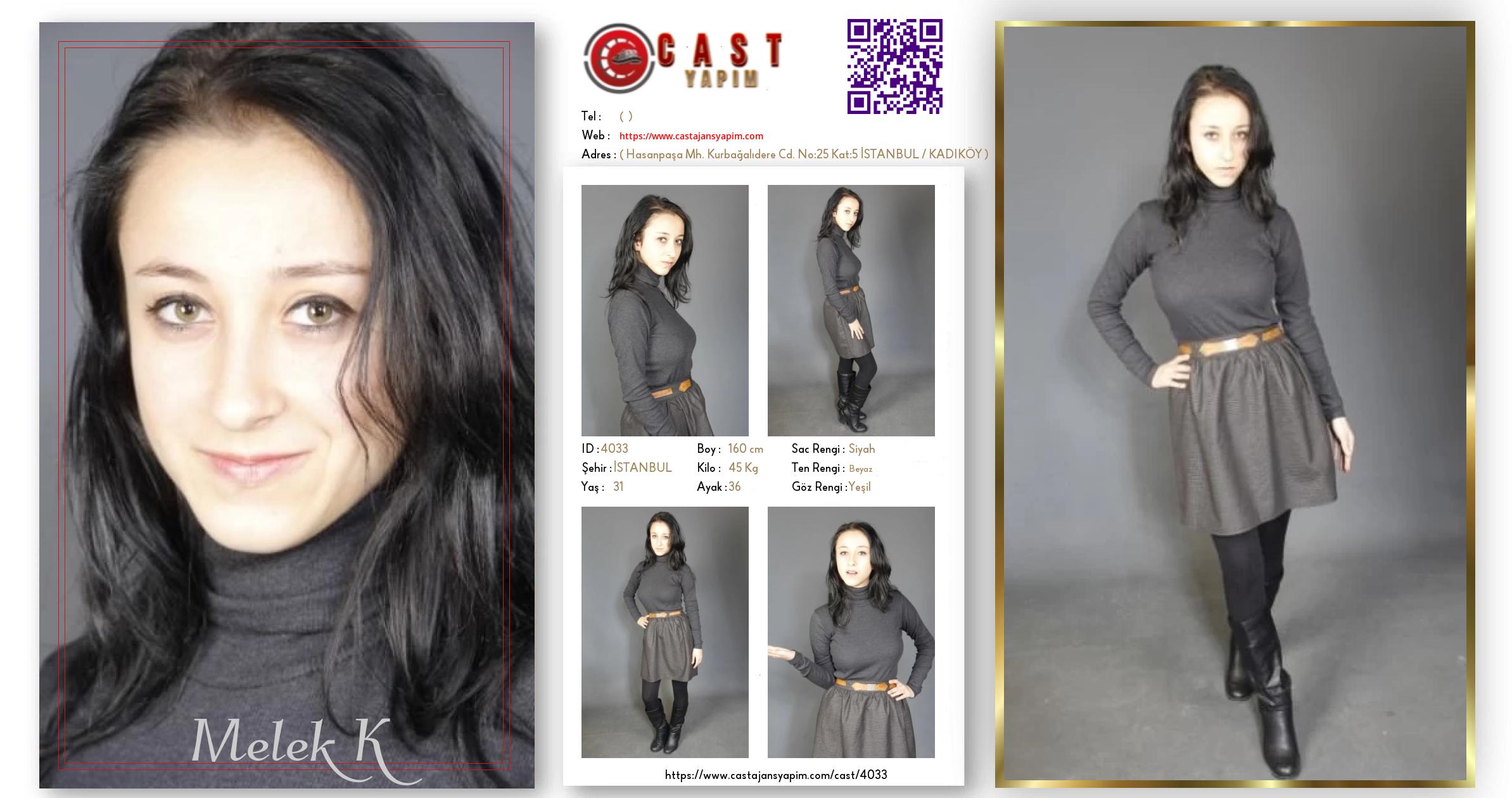 Merhaba, ben Melek K. İSTANBUL şehrinde yaşıyorum ve 31 yaşındayım. Genel özelliklerim arasında boyum 160 cm, kilom 45 kg, saç rengim Siyah, göz rengim Yeşil, ten rengim Beyaz.