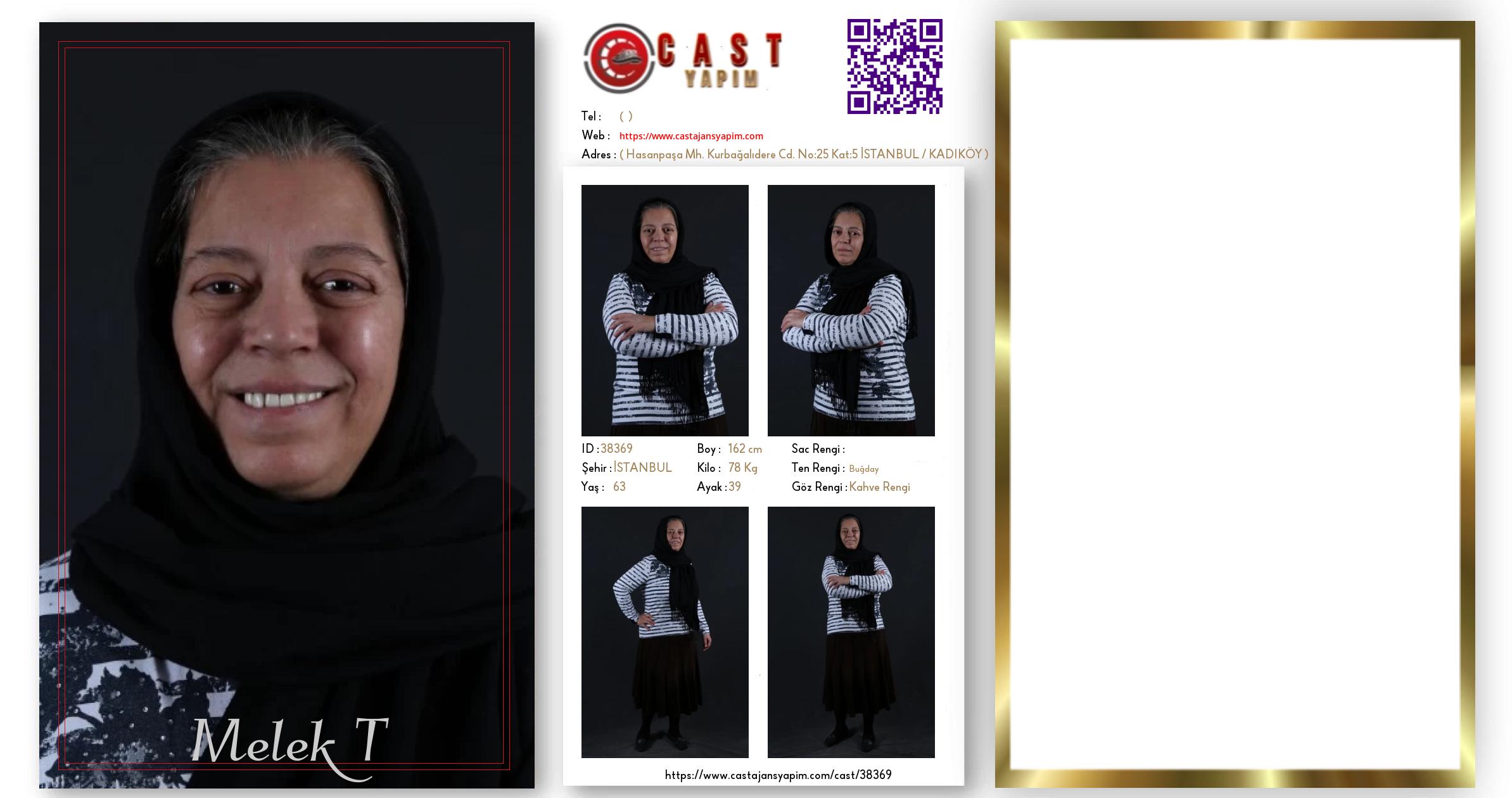 Merhaba, ben Melek. İSTANBUL şehrinde yaşıyorum ve 63 yaşındayım. Genel özelliklerim arasında boyum 162 cm, kilom 78 kg, göz rengim Kahve Rengi, ten rengim Buğday.
