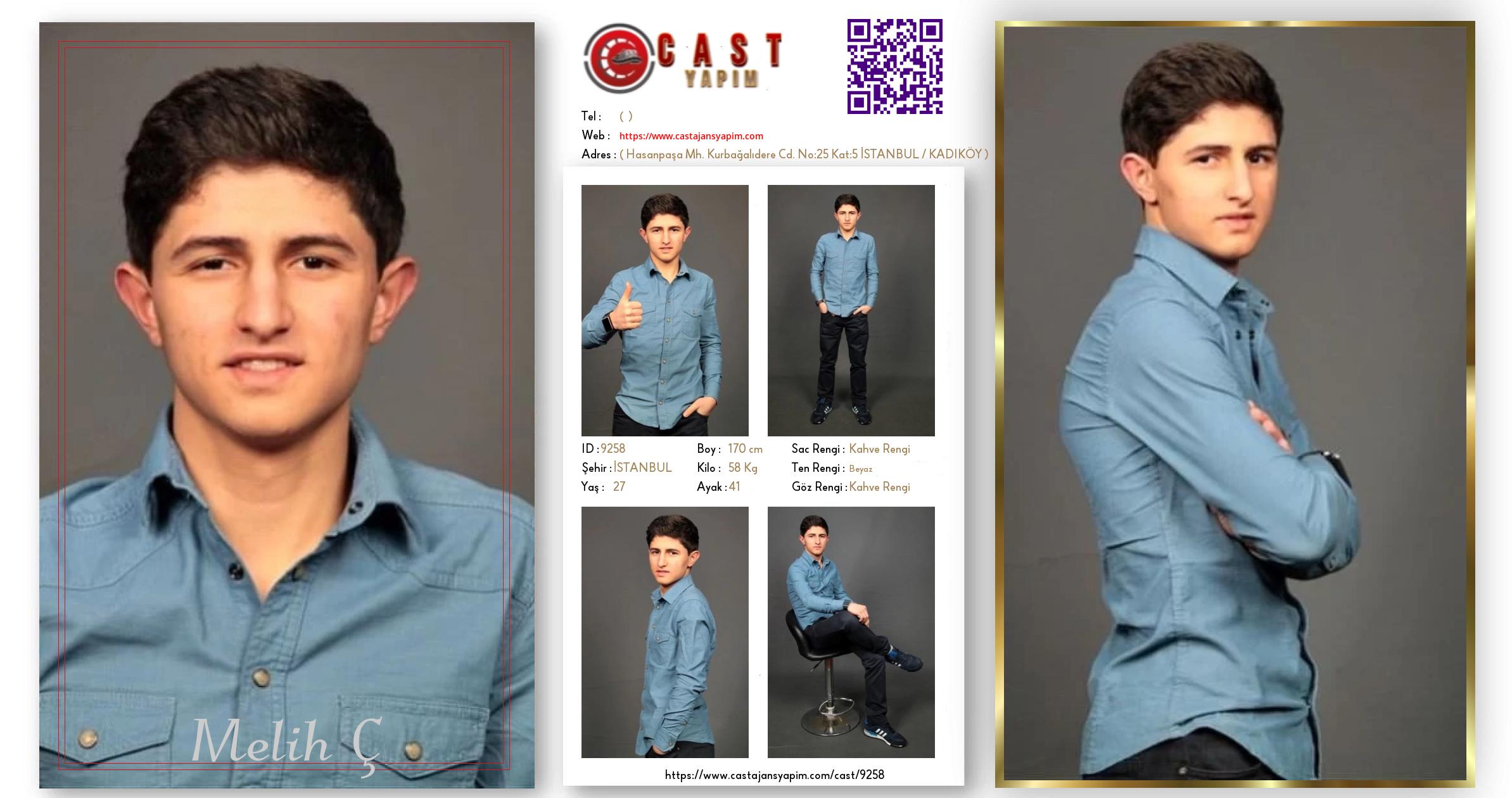 Merhaba, ben Melih Ç. İSTANBUL şehrinde yaşıyorum ve 27 yaşındayım. Genel özelliklerim arasında boyum 170 cm, kilom 58 kg, saç rengim Kahve Rengi, göz rengim Kahve Rengi, ten rengim Beyaz.