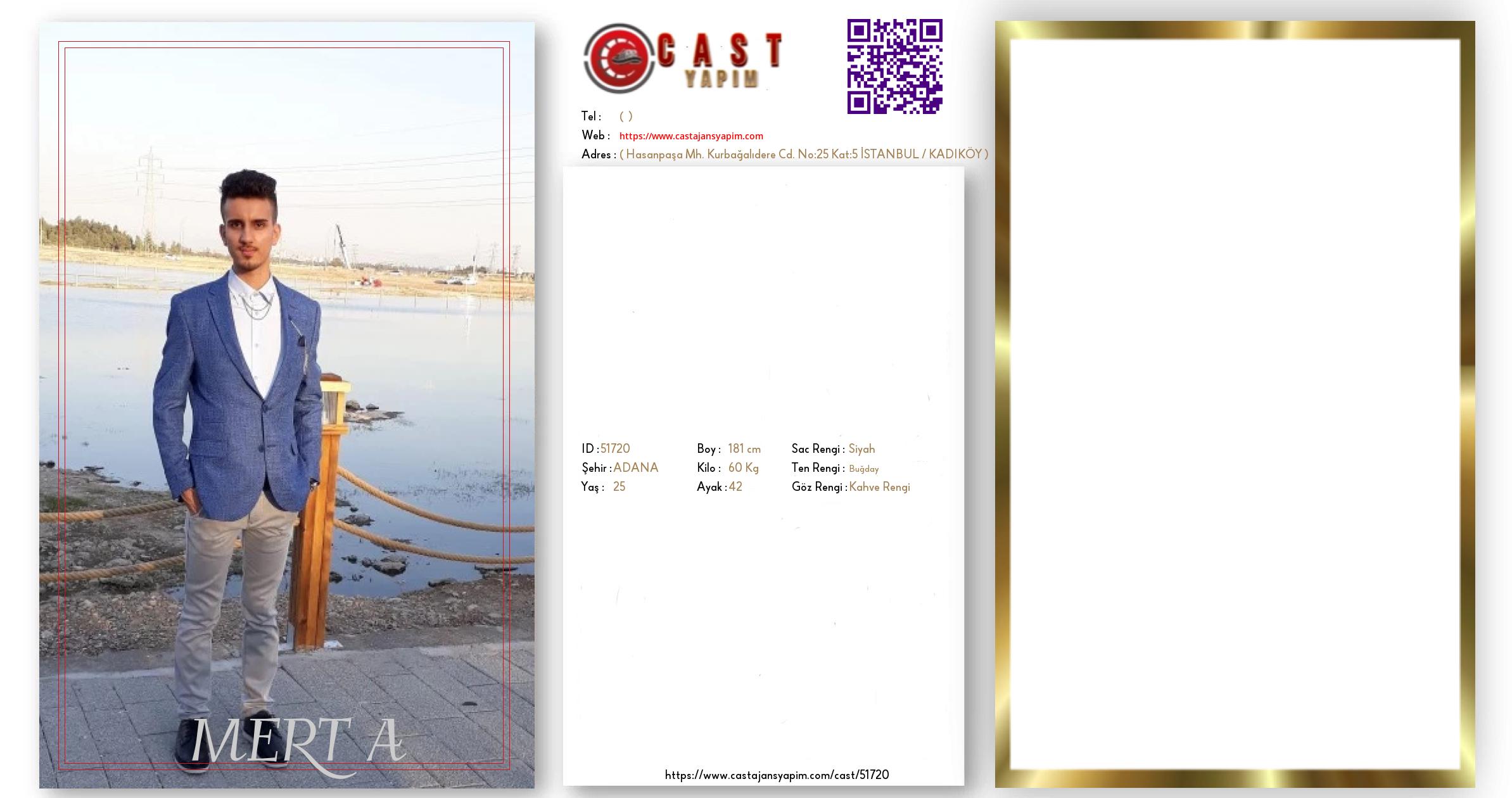 Merhaba, ben MERT A. ADANA şehrinde yaşıyorum ve 25 yaşındayım. Genel özelliklerim arasında boyum 181 cm, kilom 60 kg, saç rengim Siyah, göz rengim Kahve Rengi, ten rengim Buğday.