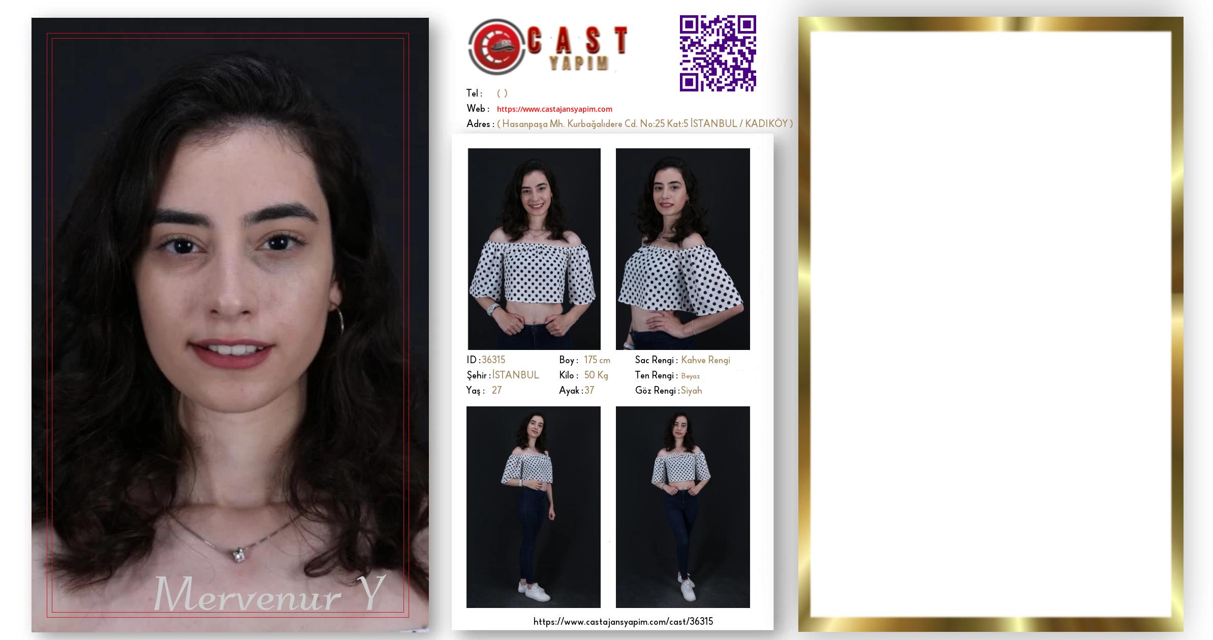 Merhaba, ben Mervenur. İSTANBUL şehrinde yaşıyorum ve 27 yaşındayım. Genel özelliklerim arasında boyum 175 cm, kilom 50 kg, saç rengim Kahve Rengi, göz rengim Siyah, ten rengim Beyaz.