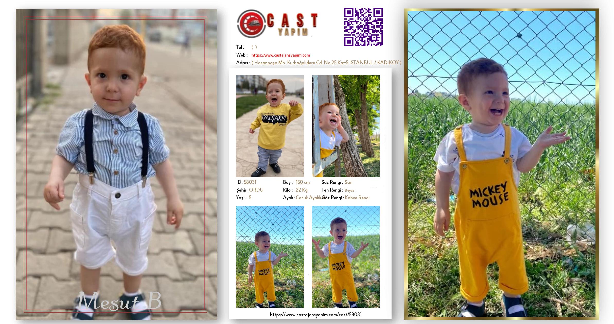 Merhaba, ben Mesut B. ORDU şehrinde yaşıyorum ve 5 yaşındayım. Genel özelliklerim arasında boyum 150 cm, kilom 22 kg, saç rengim Sarı, göz rengim Kahve Rengi, ten rengim Beyaz.
