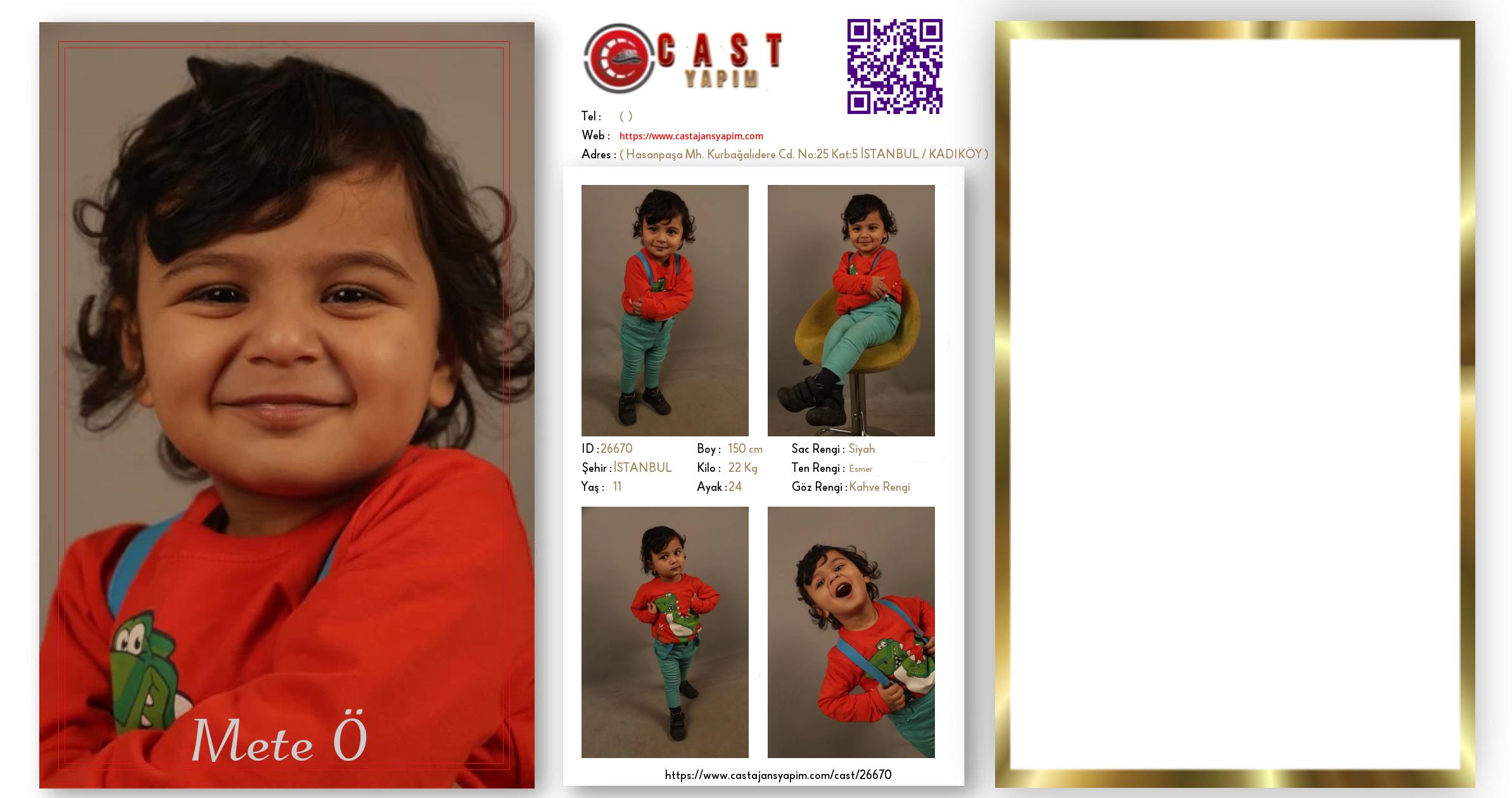 Merhaba, ben Mete Ö. İSTANBUL şehrinde yaşıyorum ve 11 yaşındayım. Genel özelliklerim arasında boyum 150 cm, kilom 22 kg, saç rengim Siyah, göz rengim Kahve Rengi, ten rengim Esmer.