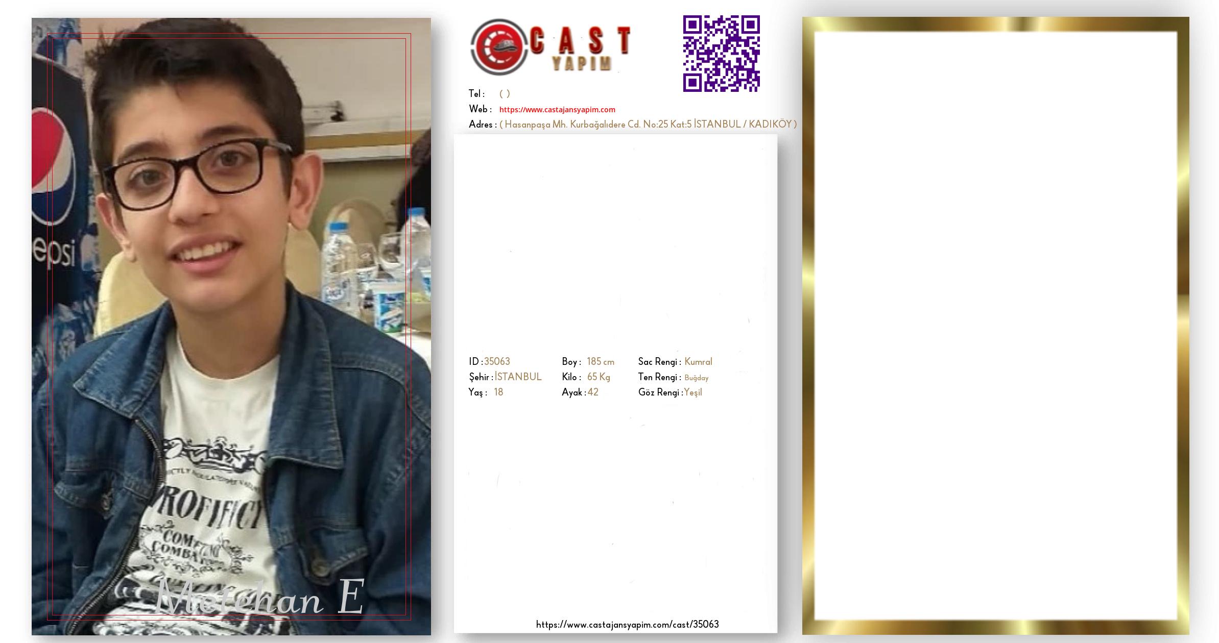 Merhaba, ben Metehan E. İSTANBUL şehrinde yaşıyorum ve 18 yaşındayım. Genel özelliklerim arasında boyum 185 cm, kilom 65 kg, saç rengim Kumral, göz rengim Yeşil, ten rengim Buğday.