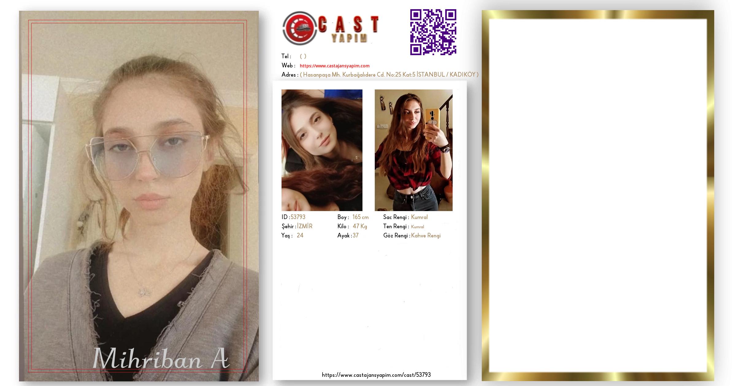 Merhaba, ben Mihriban. İZMİR şehrinde yaşıyorum ve 24 yaşındayım. Genel özelliklerim arasında boyum 165 cm, kilom 47 kg, saç rengim Kumral, göz rengim Kahve Rengi, ten rengim Kumral.