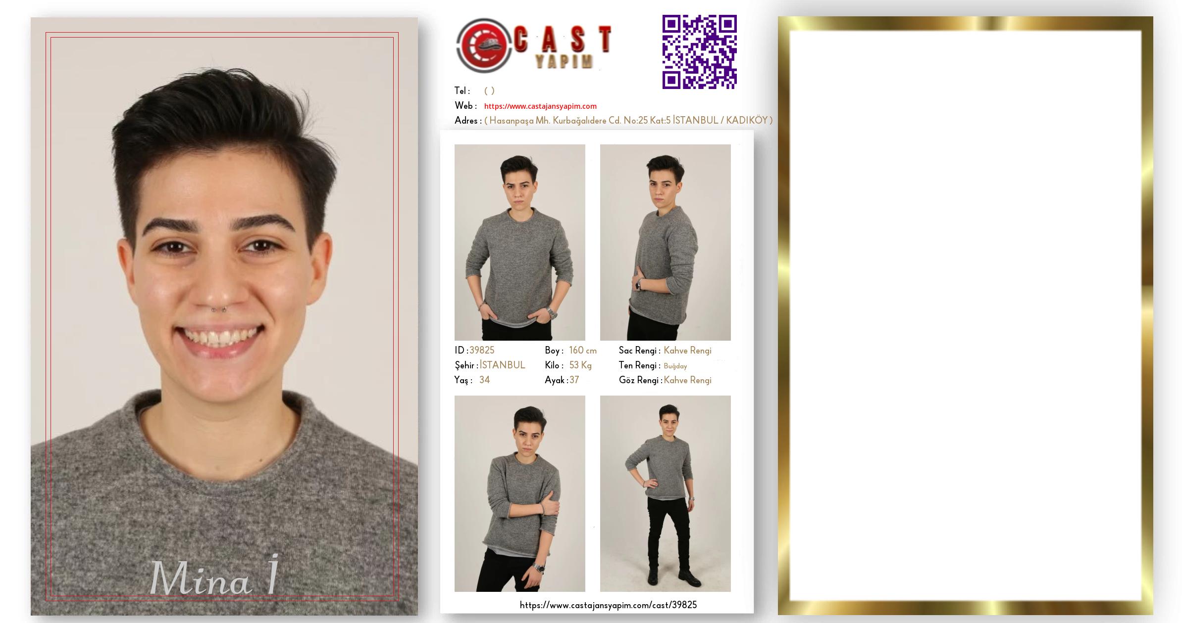 Merhaba, ben Mina. İSTANBUL şehrinde yaşıyorum ve 34 yaşındayım. Genel özelliklerim arasında boyum 160 cm, kilom 53 kg, saç rengim Kahve Rengi, göz rengim Kahve Rengi, ten rengim Buğday.
