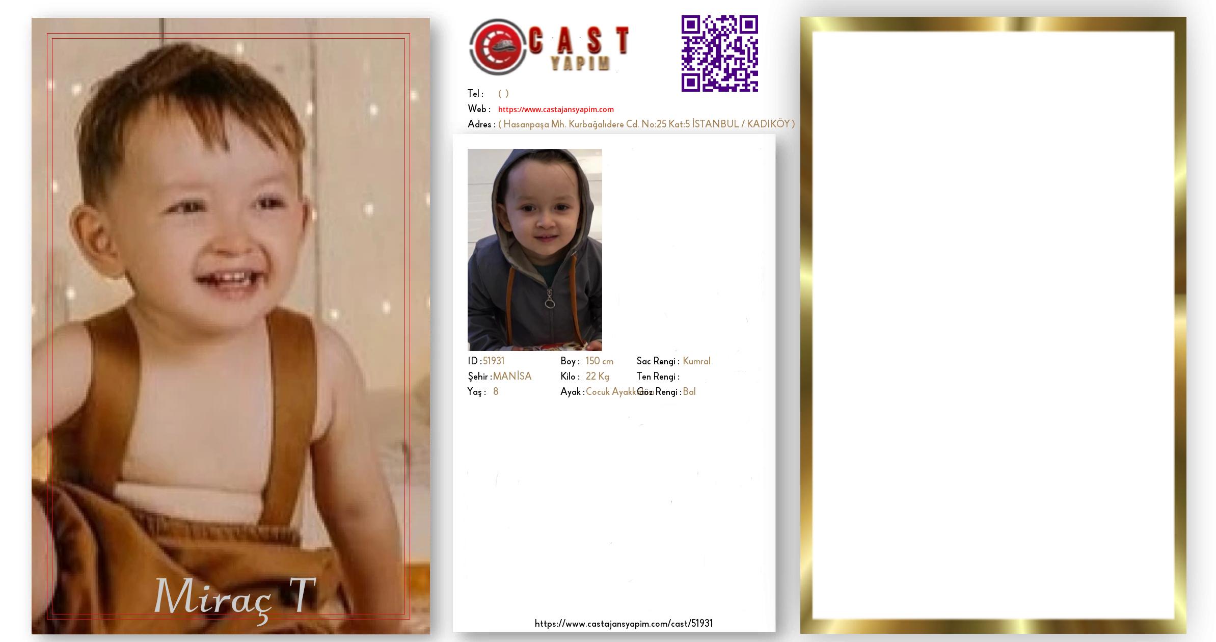 Merhaba, ben Miraç. MANİSA şehrinde yaşıyorum ve 8 yaşındayım. Genel özelliklerim arasında boyum 150 cm, kilom 22 kg, saç rengim Kumral, göz rengim Bal.
