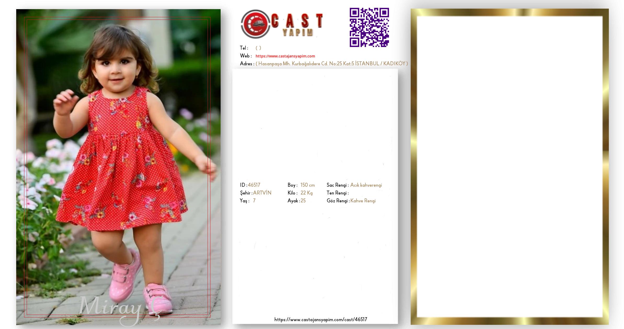 Merhaba, ben Miray Ç. ARTVİN şehrinde yaşıyorum ve 7 yaşındayım. Genel özelliklerim arasında boyum 150 cm, kilom 22 kg, saç rengim Açık kahverengi, göz rengim Kahve Rengi.