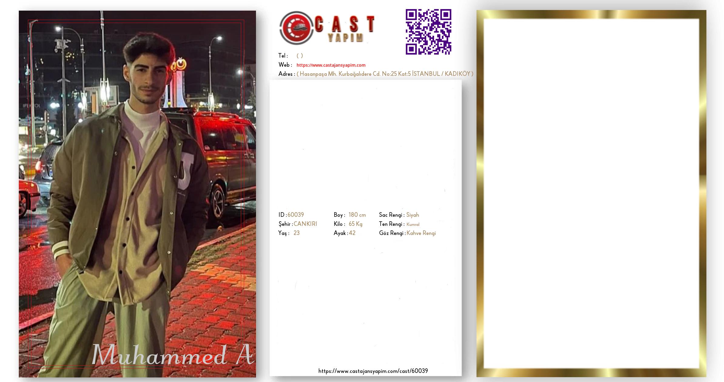 Merhaba, ben Muhammed. ÇANKIRI şehrinde yaşıyorum ve 23 yaşındayım. Genel özelliklerim arasında boyum 180 cm, kilom 65 kg, saç rengim Siyah, göz rengim Kahve Rengi, ten rengim Kumral.