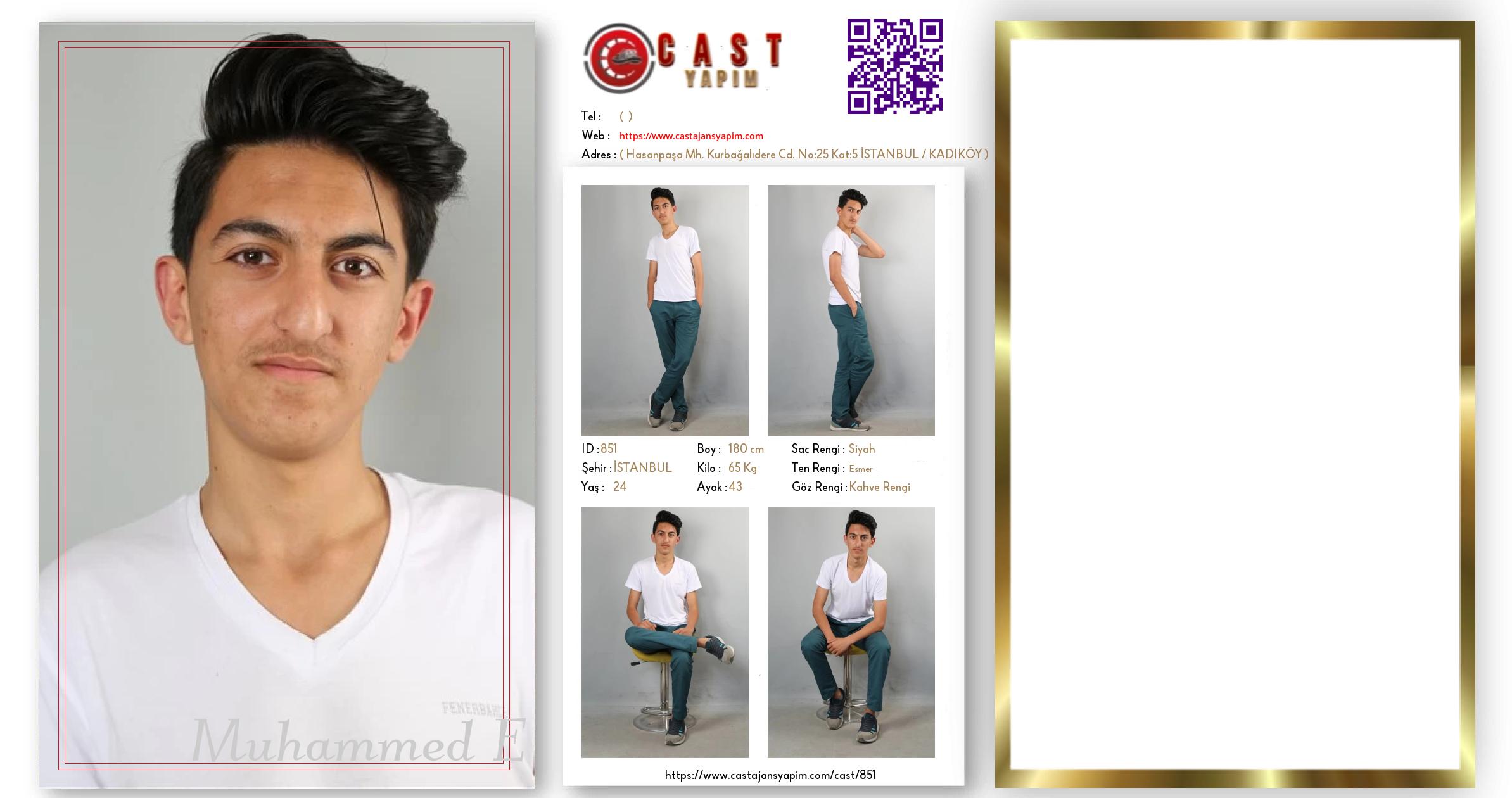 Merhaba, ben Muhammed E. İSTANBUL şehrinde yaşıyorum ve 24 yaşındayım. Genel özelliklerim arasında boyum 180 cm, kilom 65 kg, saç rengim Siyah, göz rengim Kahve Rengi, ten rengim Esmer.
