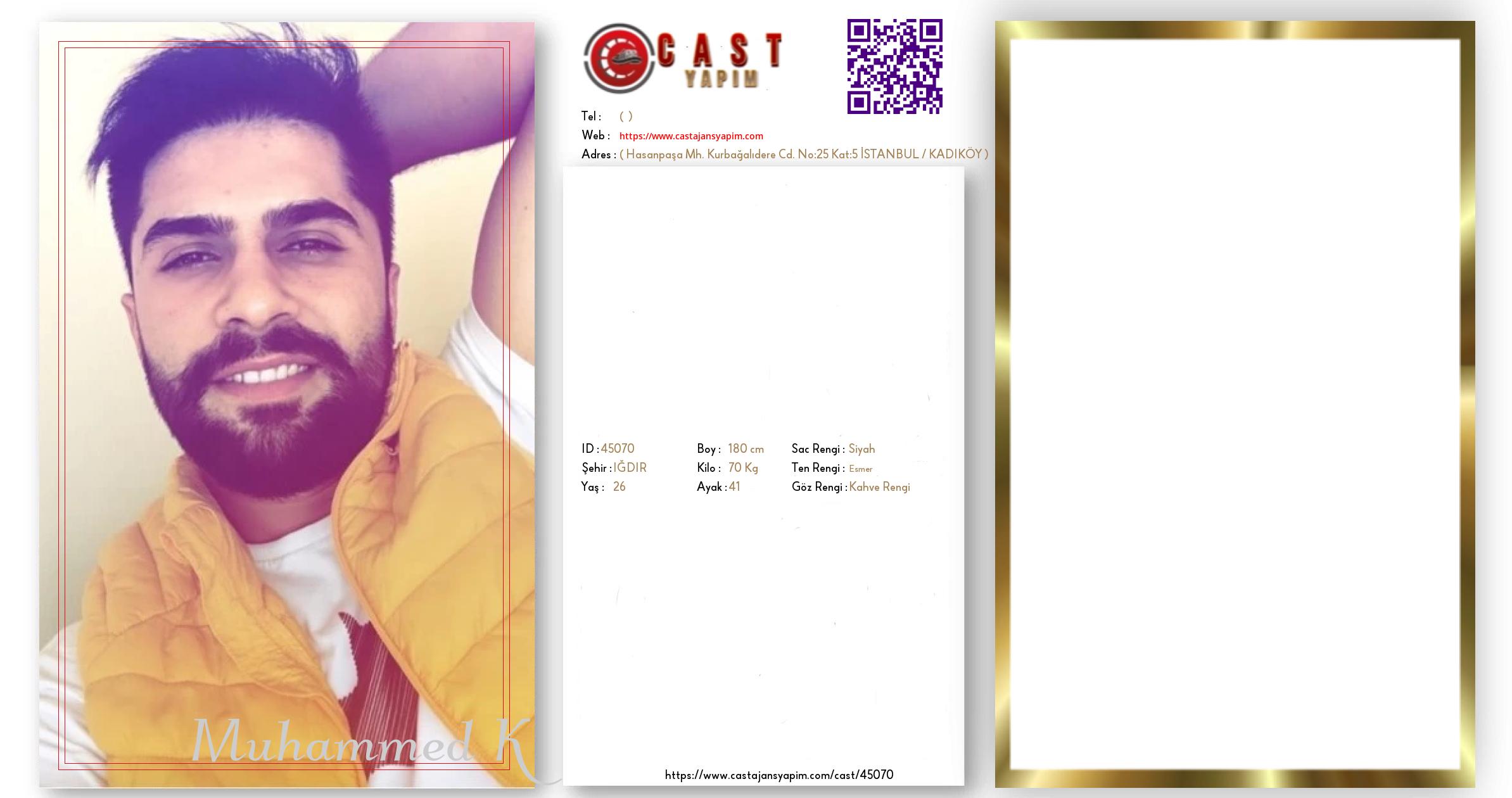 Merhaba, ben Muhammed. IĞDIR şehrinde yaşıyorum ve 26 yaşındayım. Genel özelliklerim arasında boyum 180 cm, kilom 70 kg, saç rengim Siyah, göz rengim Kahve Rengi, ten rengim Esmer.