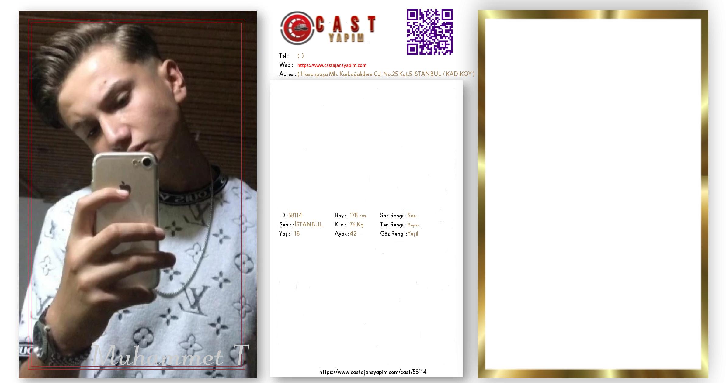 Merhaba, ben Muhammet. İSTANBUL şehrinde yaşıyorum ve 18 yaşındayım. Genel özelliklerim arasında boyum 178 cm, kilom 76 kg, saç rengim Sarı, göz rengim Yeşil, ten rengim Beyaz.
