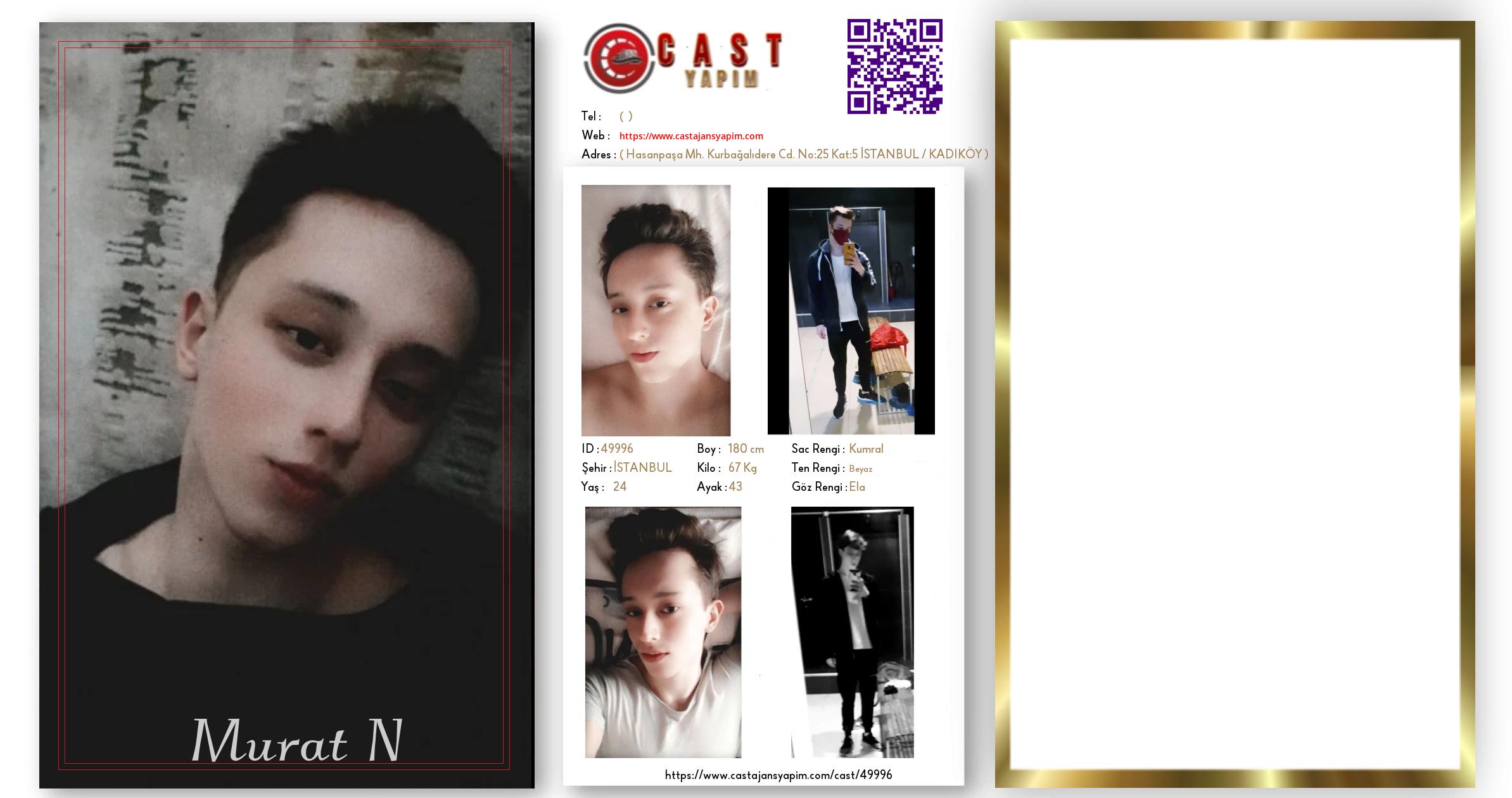 Merhaba, ben Murat N. İSTANBUL şehrinde yaşıyorum ve 24 yaşındayım. Genel özelliklerim arasında boyum 180 cm, kilom 67 kg, saç rengim Kumral, göz rengim Ela, ten rengim Beyaz.