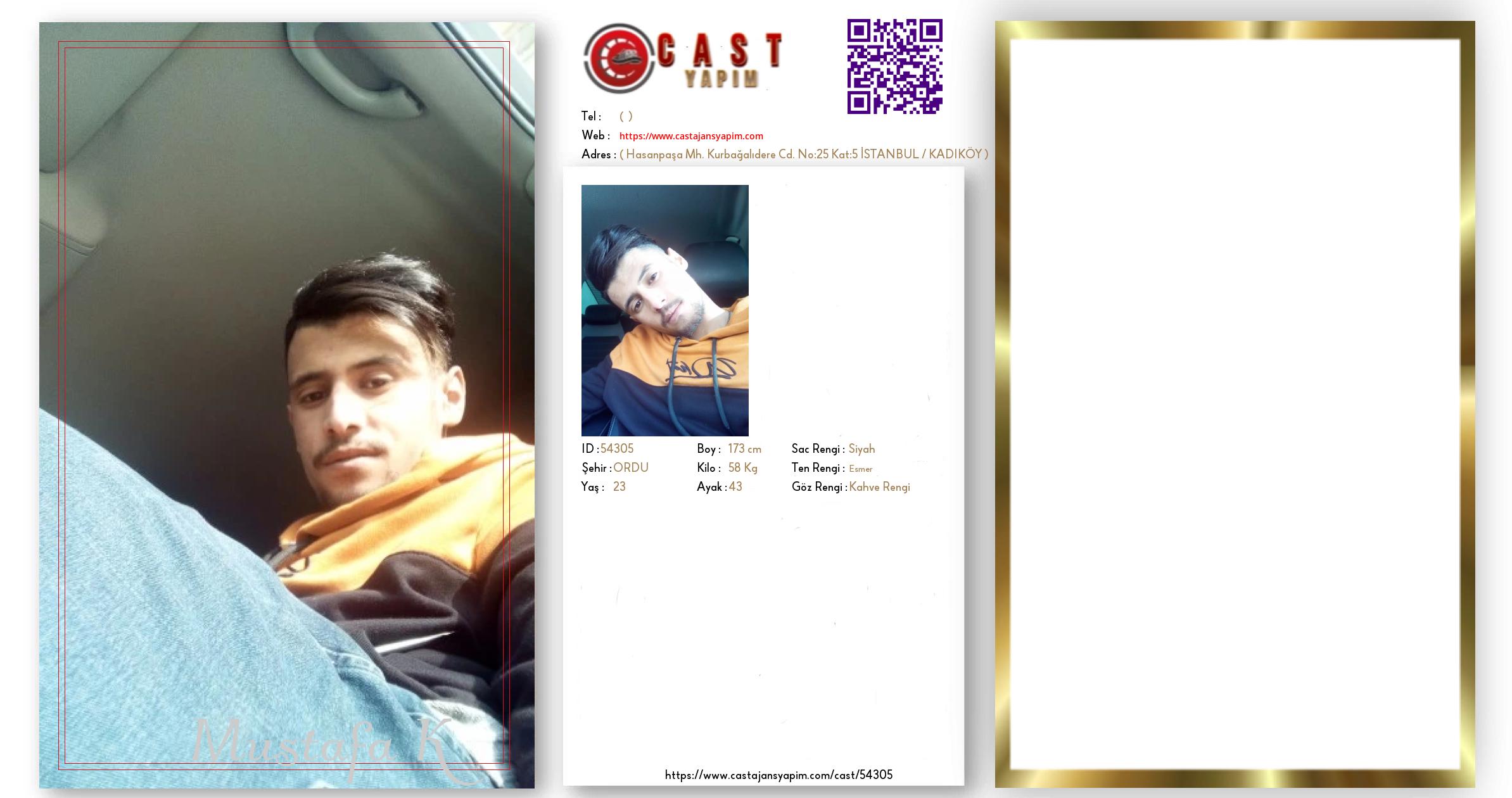 Merhaba, ben Mustafa. ORDU şehrinde yaşıyorum ve 23 yaşındayım. Genel özelliklerim arasında boyum 173 cm, kilom 58 kg, saç rengim Siyah, göz rengim Kahve Rengi, ten rengim Esmer.