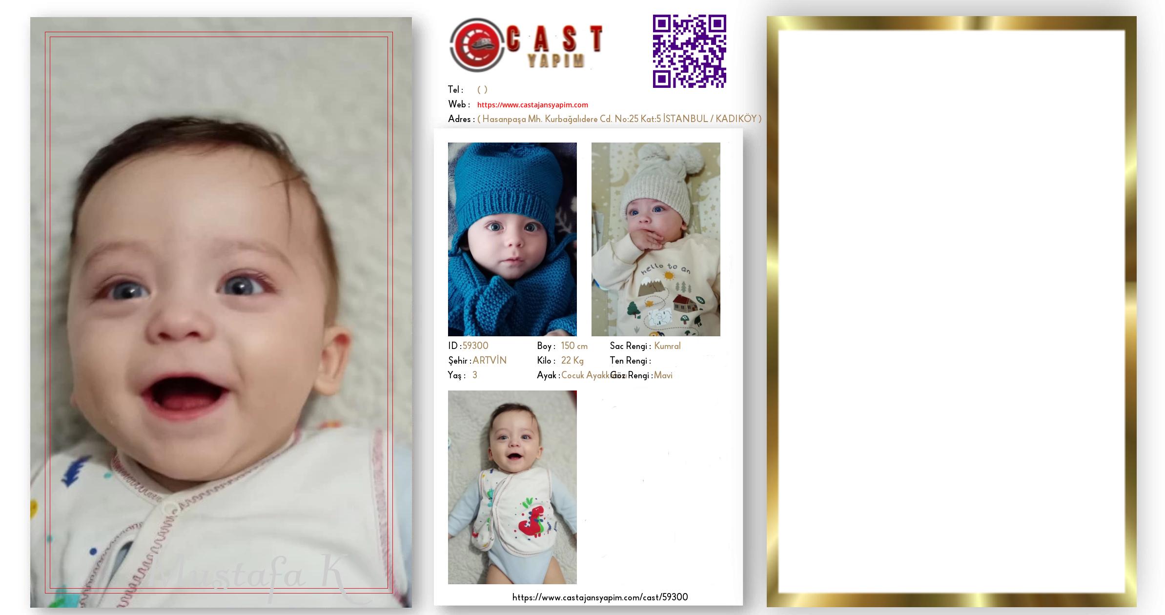 Merhaba, ben Mustafa Yusuf. ARTVİN şehrinde yaşıyorum ve 3 yaşındayım. Genel özelliklerim arasında boyum 150 cm, kilom 22 kg, saç rengim Kumral, göz rengim Mavi.