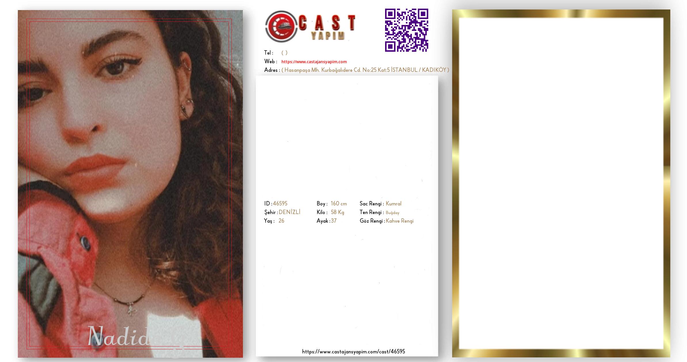 Merhaba, ben Nadide. DENİZLİ şehrinde yaşıyorum ve 26 yaşındayım. Genel özelliklerim arasında boyum 160 cm, kilom 58 kg, saç rengim Kumral, göz rengim Kahve Rengi, ten rengim Buğday.