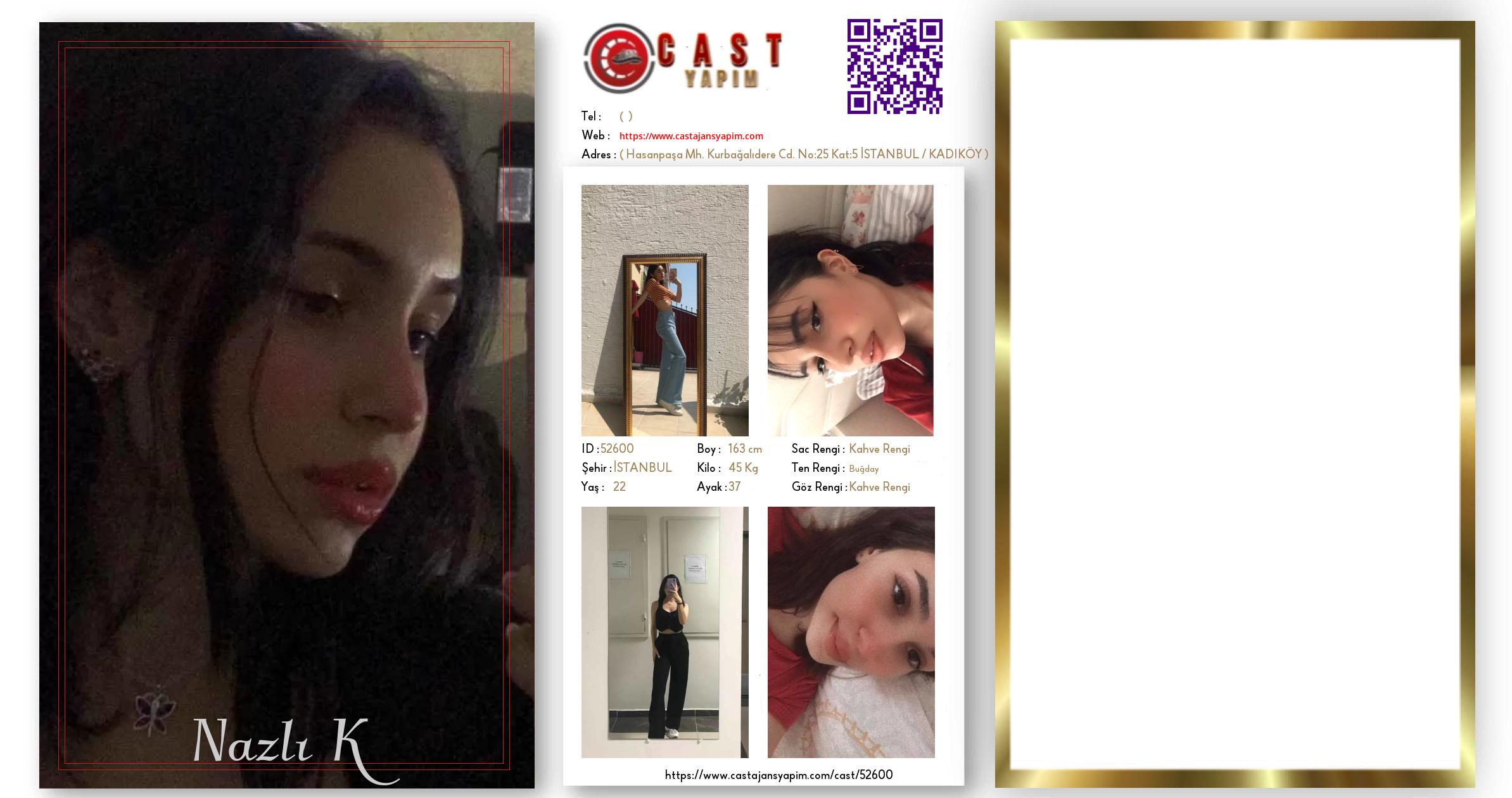 Merhaba, ben Nazlı. İSTANBUL şehrinde yaşıyorum ve 22 yaşındayım. Genel özelliklerim arasında boyum 163 cm, kilom 45 kg, saç rengim Kahve Rengi, göz rengim Kahve Rengi, ten rengim Buğday.
