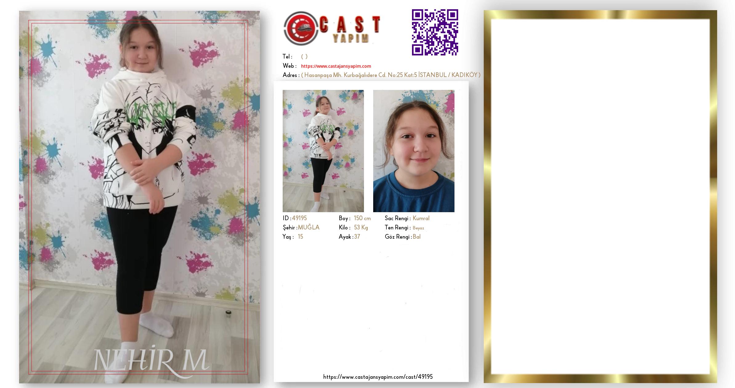 Merhaba, ben NEHİR MELEK. MUĞLA şehrinde yaşıyorum ve 15 yaşındayım. Genel özelliklerim arasında boyum 150 cm, kilom 53 kg, saç rengim Kumral, göz rengim Bal, ten rengim Beyaz.