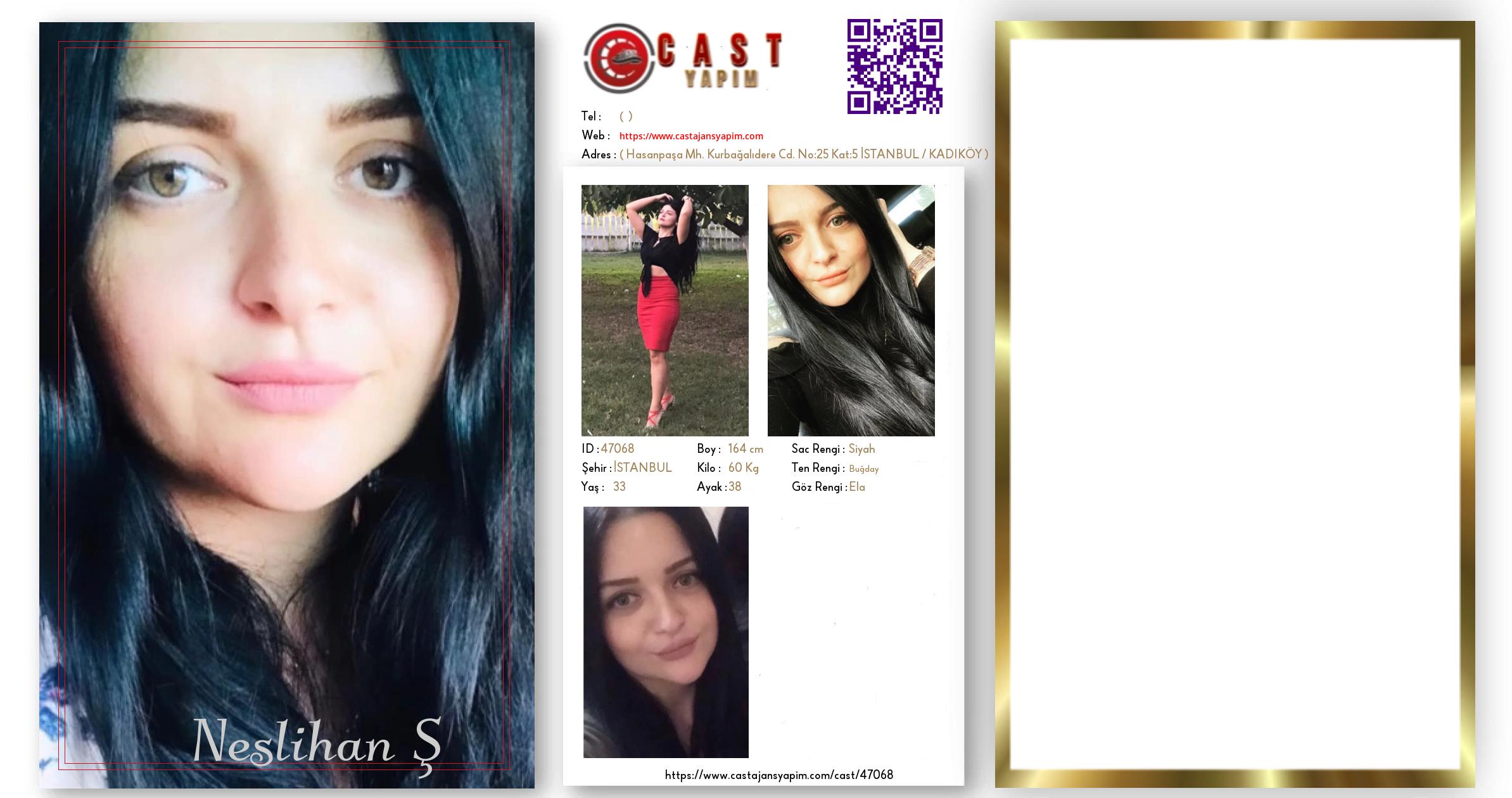 Merhaba, ben Neslihan. İSTANBUL şehrinde yaşıyorum ve 33 yaşındayım. Genel özelliklerim arasında boyum 164 cm, kilom 60 kg, saç rengim Siyah, göz rengim Ela, ten rengim Buğday.