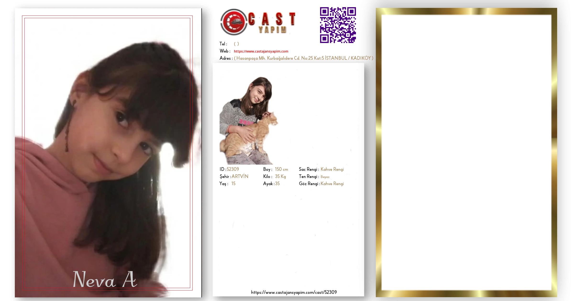 Merhaba, ben Neva A. ARTVİN şehrinde yaşıyorum ve 15 yaşındayım. Genel özelliklerim arasında boyum 150 cm, kilom 35 kg, saç rengim Kahve Rengi, göz rengim Kahve Rengi, ten rengim Beyaz.