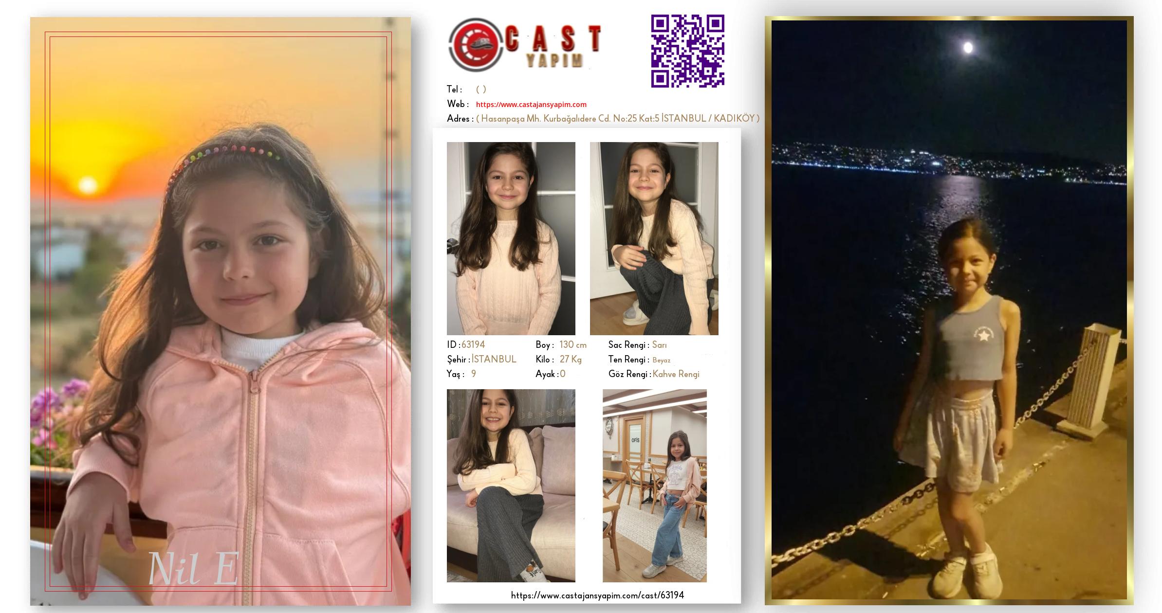 Merhaba, ben Nil E. İSTANBUL şehrinde yaşıyorum ve 9 yaşındayım. Genel özelliklerim arasında boyum 130 cm, kilom 27 kg, saç rengim Sarı, göz rengim Kahve Rengi, ten rengim Beyaz.
