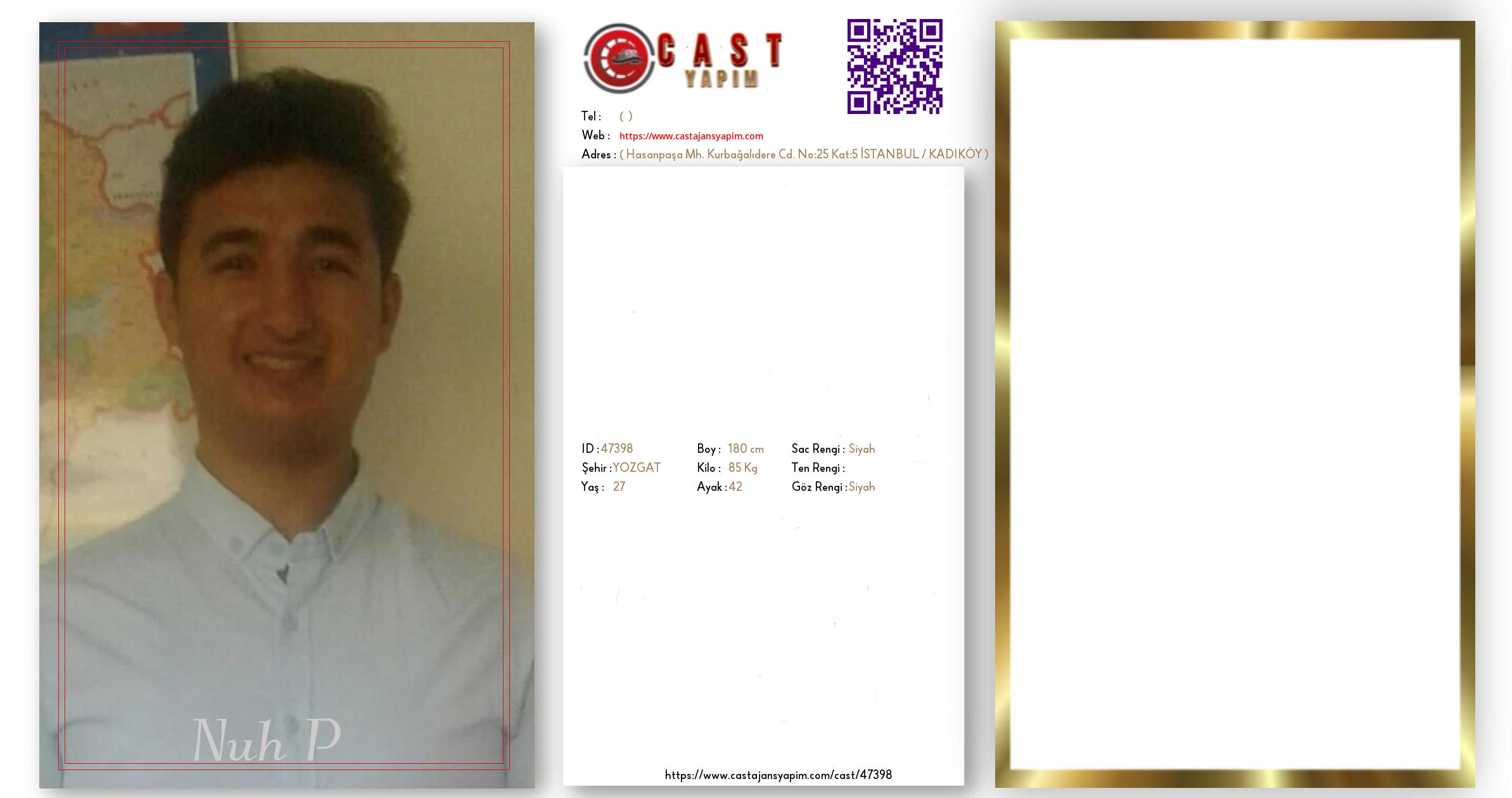 Merhaba, ben Nuh P. YOZGAT şehrinde yaşıyorum ve 27 yaşındayım. Genel özelliklerim arasında boyum 180 cm, kilom 85 kg, saç rengim Siyah, göz rengim Siyah.