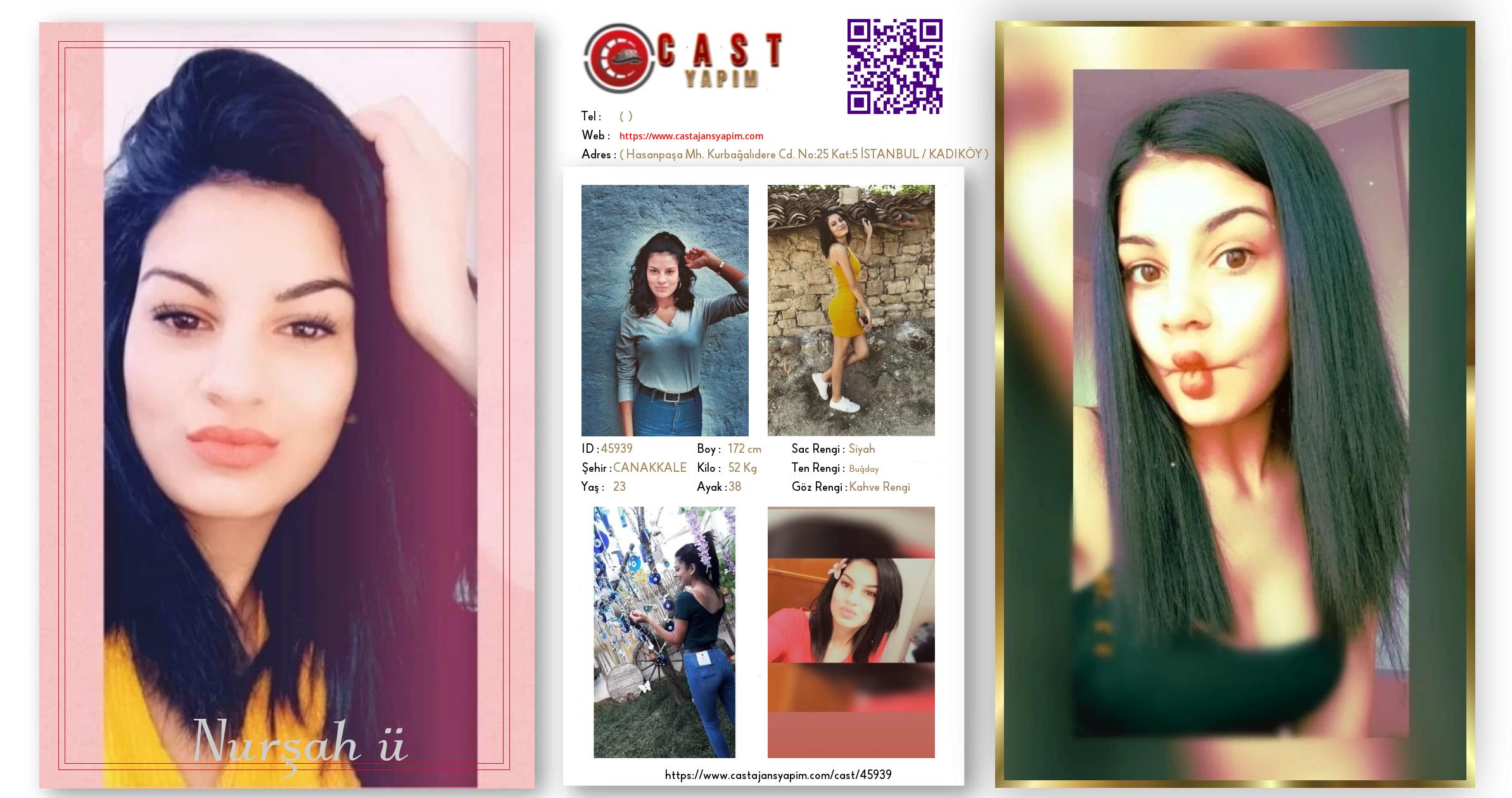 Merhaba, ben Nurşah ü. ÇANAKKALE şehrinde yaşıyorum ve 23 yaşındayım. Genel özelliklerim arasında boyum 172 cm, kilom 52 kg, saç rengim Siyah, göz rengim Kahve Rengi, ten rengim Buğday.