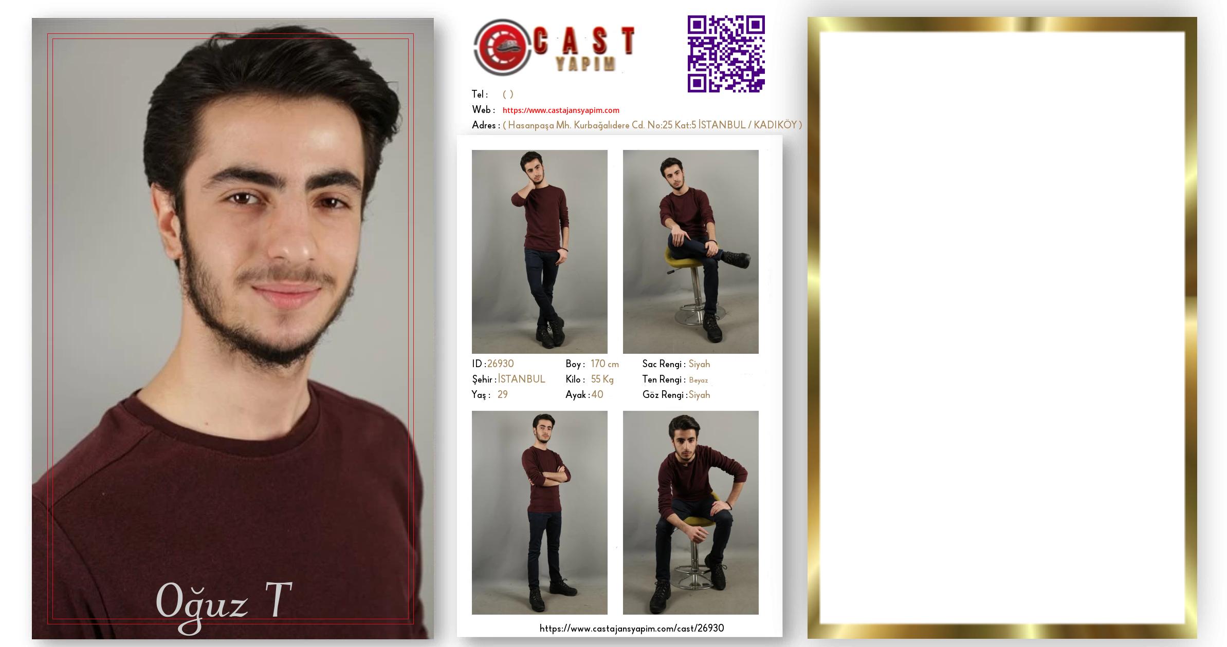 Merhaba, ben Oğuz Kağan. İSTANBUL şehrinde yaşıyorum ve 29 yaşındayım. Genel özelliklerim arasında boyum 170 cm, kilom 55 kg, saç rengim Siyah, göz rengim Siyah, ten rengim Beyaz.