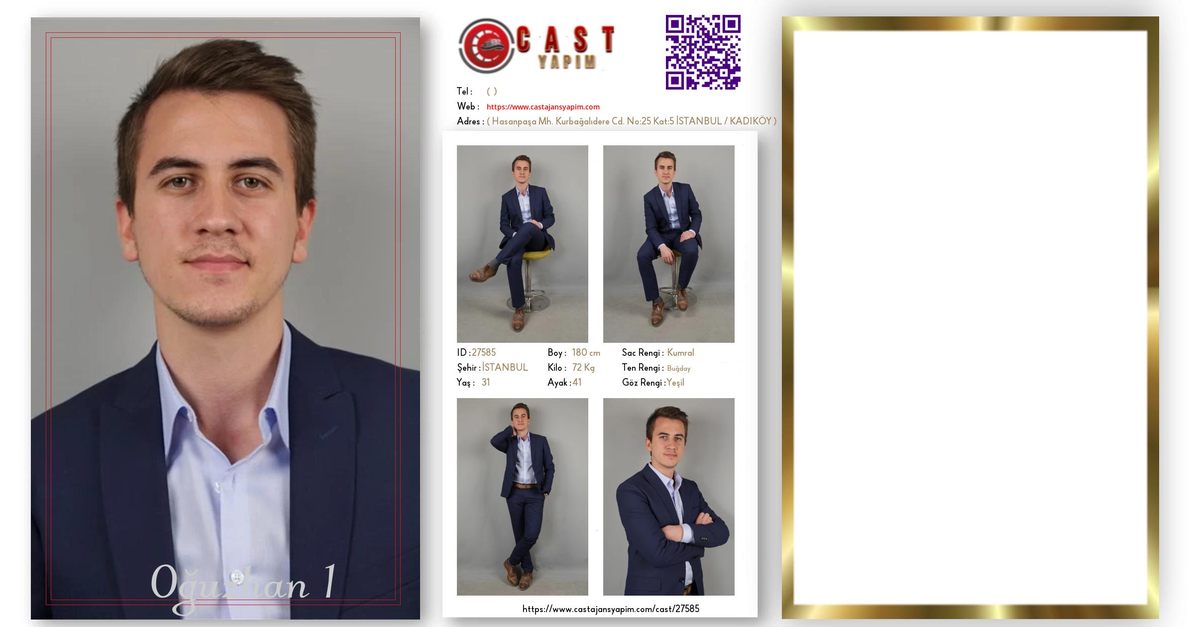 Merhaba, ben Oğuzhan KAYA. İSTANBUL şehrinde yaşıyorum ve 31 yaşındayım. Genel özelliklerim arasında boyum 180 cm, kilom 72 kg, saç rengim Kumral, göz rengim Yeşil, ten rengim Buğday.