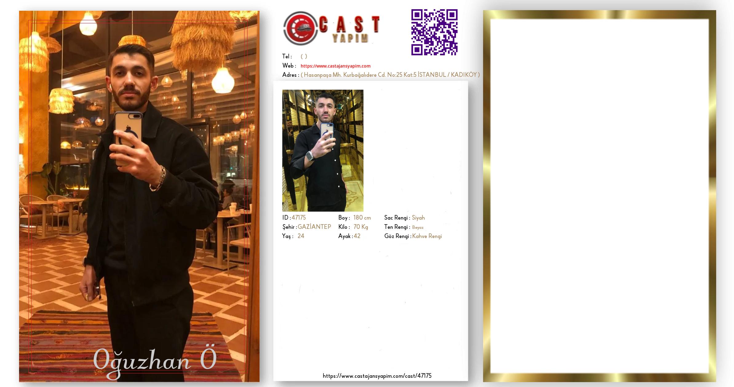 Merhaba, ben Oğuzhan. GAZİANTEP şehrinde yaşıyorum ve 24 yaşındayım. Genel özelliklerim arasında boyum 180 cm, kilom 70 kg, saç rengim Siyah, göz rengim Kahve Rengi, ten rengim Beyaz.