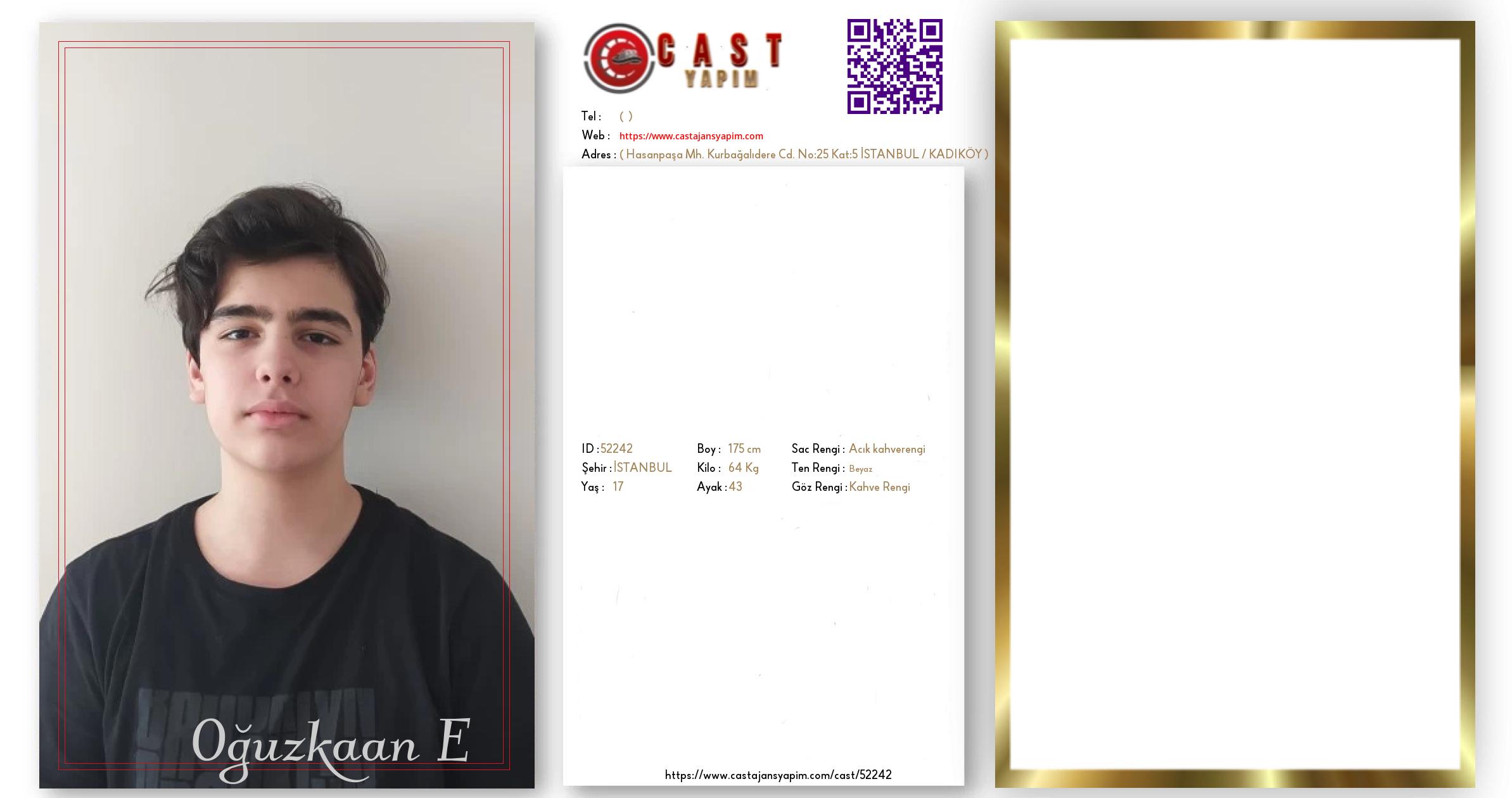 Merhaba, ben Oğuzkaan E. İSTANBUL şehrinde yaşıyorum ve 17 yaşındayım. Genel özelliklerim arasında boyum 175 cm, kilom 64 kg, saç rengim Açık kahverengi, göz rengim Kahve Rengi, ten rengim Beyaz.